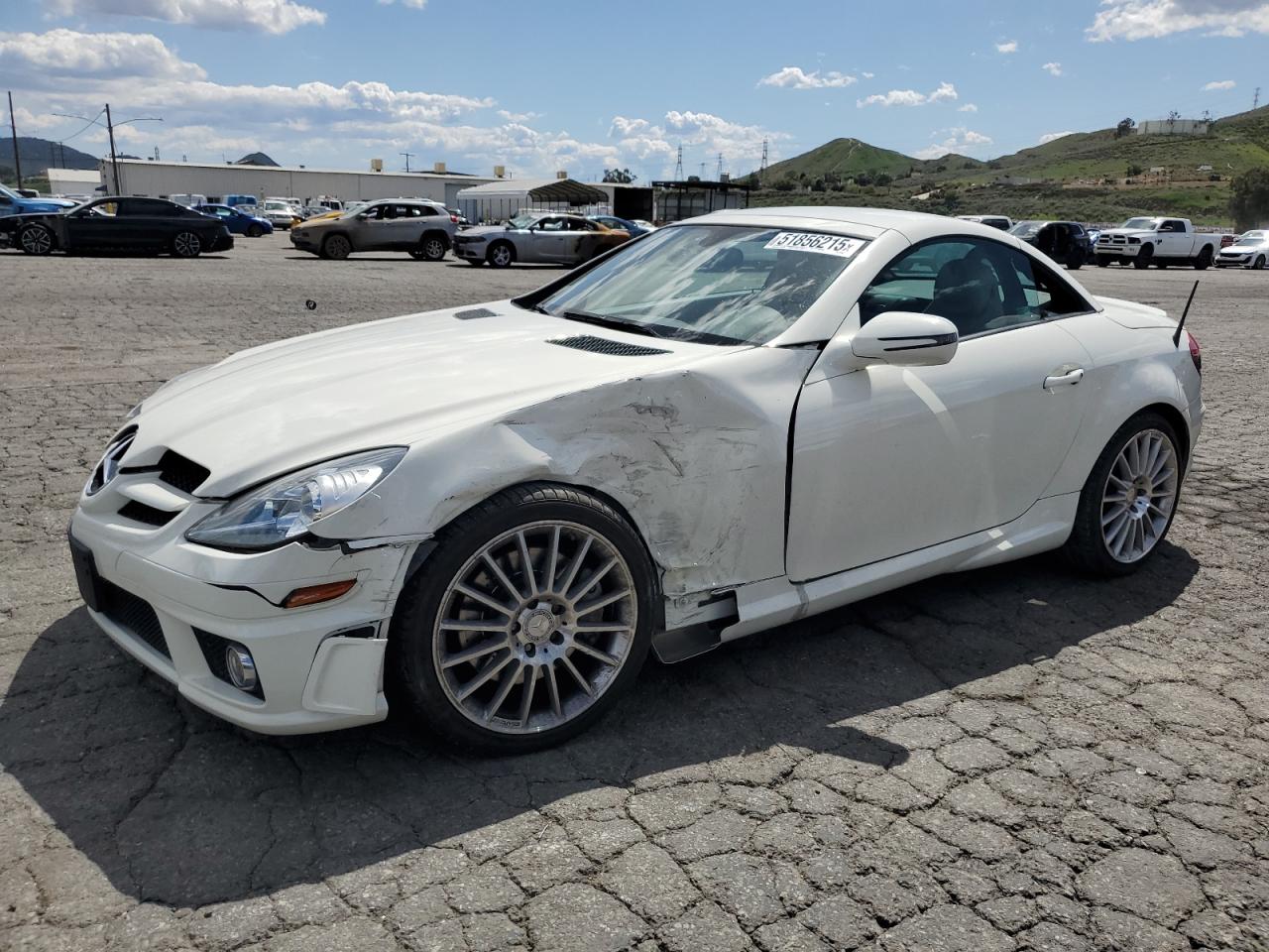 FairThis is a 2011 MERCEDES-BENZ SLK 300. The primary damage is to the front end with damage to the body panels. The vehicle is white and starts with a Run & Drive Verified code. The vehicle has visible damage, wheels, lights and glasses are intact. The car itself is a convertible sports car known for its sleek design and performance. Summary: The vehicle's damage includes body damage, with a fair exterior condition. Interior condition is good. The vehicle's overall state is fair. Keywords: MERCEDES-BENZ SLK 300, 2011, front end damage, body damage, white car, convertible, repairable, drivable.