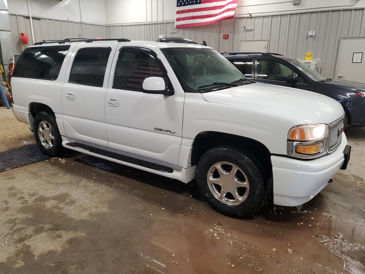 GoodThe 2006 GMC Yukon XL Denali exhibits normal wear and tear. The white paint shows some signs of age, but overall the body panels appear to be in good condition. The wheels and lights are intact and function correctly. The interior shows moderate wear and tear consistent with its age and mileage. The car runs and drives, as confirmed by the 'Run & Drive Verified' status.