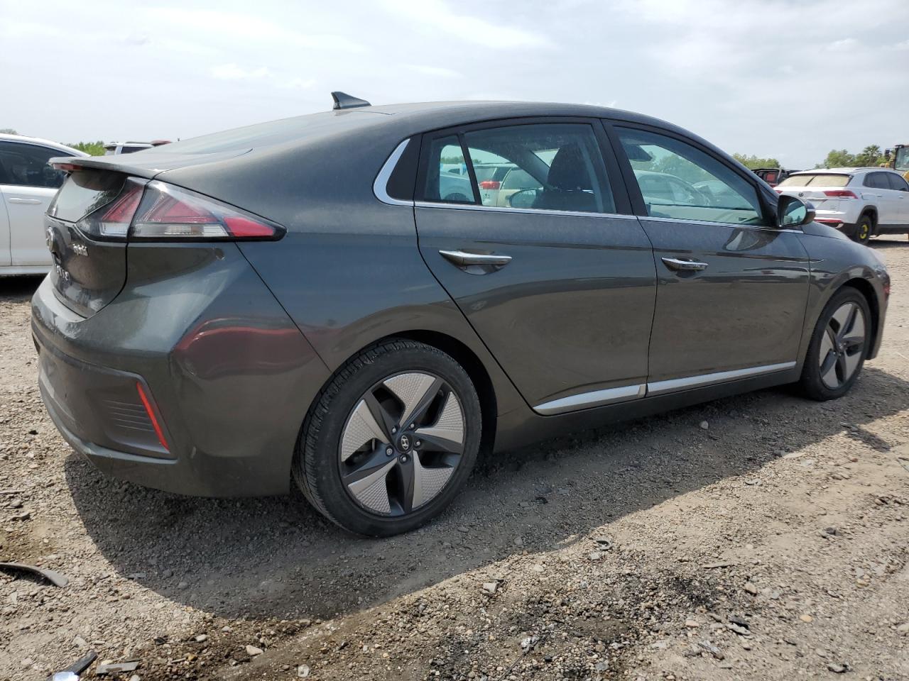 GoodThe HYUNDAI IONIQ LIMI 2021, is a grey car with water/flood damage. The vehicle starts. The exterior shows damage limited to the body panels. Interior condition is very good. The wheels, lights, and glasses appear intact. The car may require some repairs, but it is drivable. The interior shows minimal wear and tear. The airbags' status is not explicitly mentioned in the pictures. The vehicle is drivable so improving overall exterior condition.
