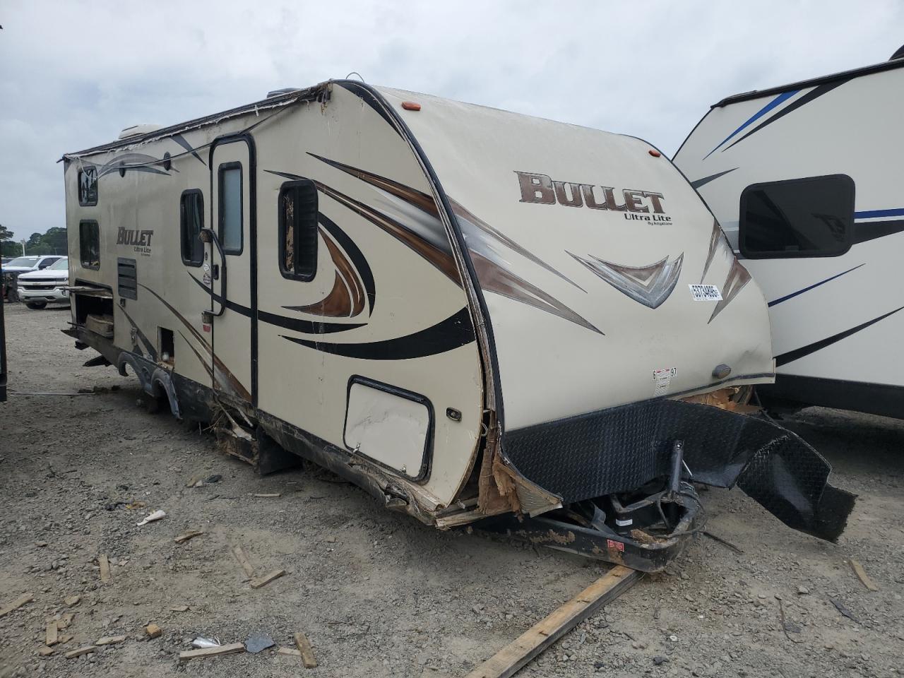 PoorThis is a damaged 2016 KEYSTONE BULLET Ultra Lite RV. The primary damage is WATER/FLOOD, with no secondary damage reported. The exterior is two-tone and shows significant damage, particularly to the front and rear. The interior also shows damage. The wheels appear to be present but may have sustained damage. Lights and glasses have damage, and the vehicle is not drivable in its current state.