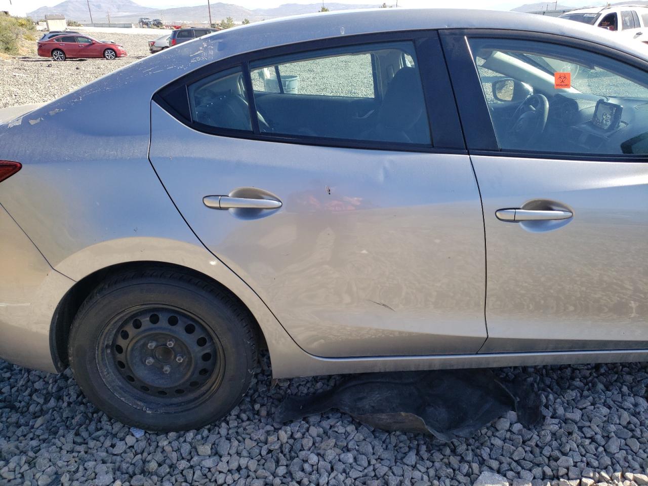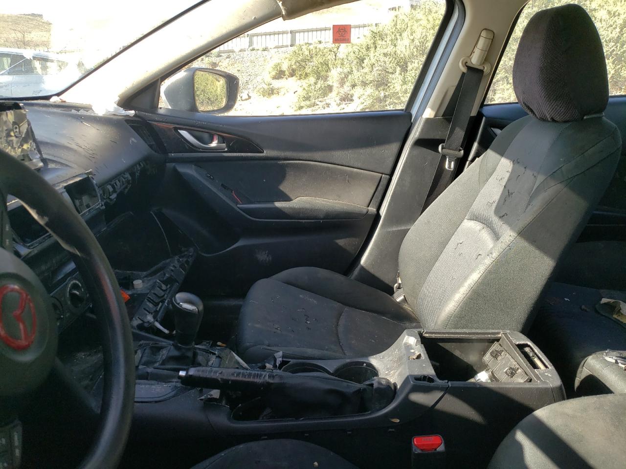 FairThe 2015 Mazda 3 Sport, silver in color, displays significant damage. The primary damage is to the side, with secondary damage to the rear end. The exterior shows noticeable body damage. The wheels are present but damaged. The interior is heavily damaged, including potential airbag deployment. The lights and glasses appear to be intact. The car requires considerable repairs and is not drivable.