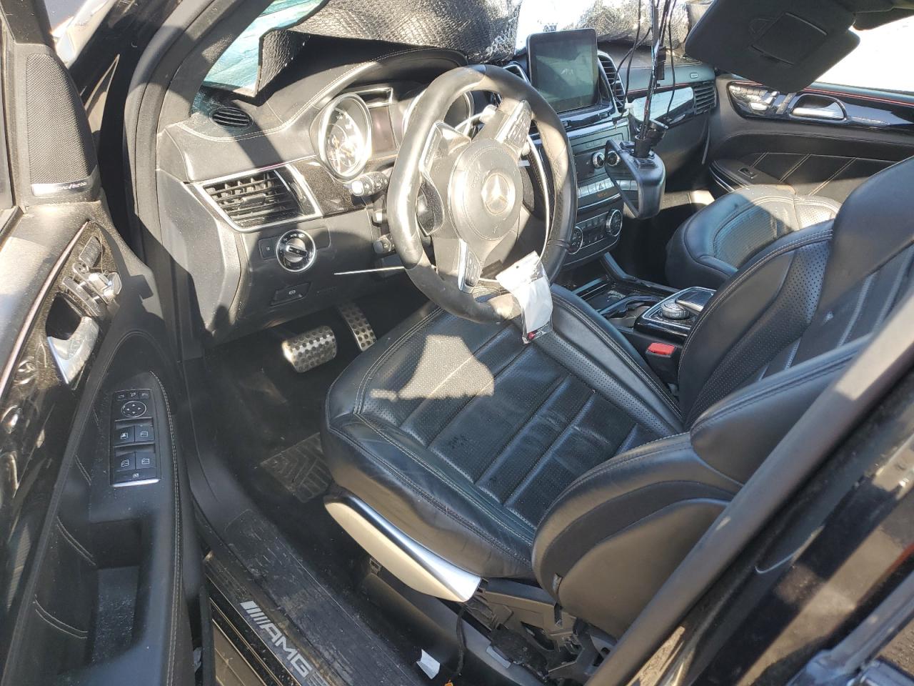 PoorThe 2017 MERCEDES-BENZ GLS 63 AMG, black in color, exhibits significant damage. The front end is heavily damaged, including the front bumper, hood, and lights. The top/roof of the vehicle is also severely damaged. The car's interior shows signs of damage, including airbags deployment, and the condition is considered poor. The wheels appear to be in usable condition. This SUV requires considerable repair and is likely not drivable in its current state. It may be a parts car.