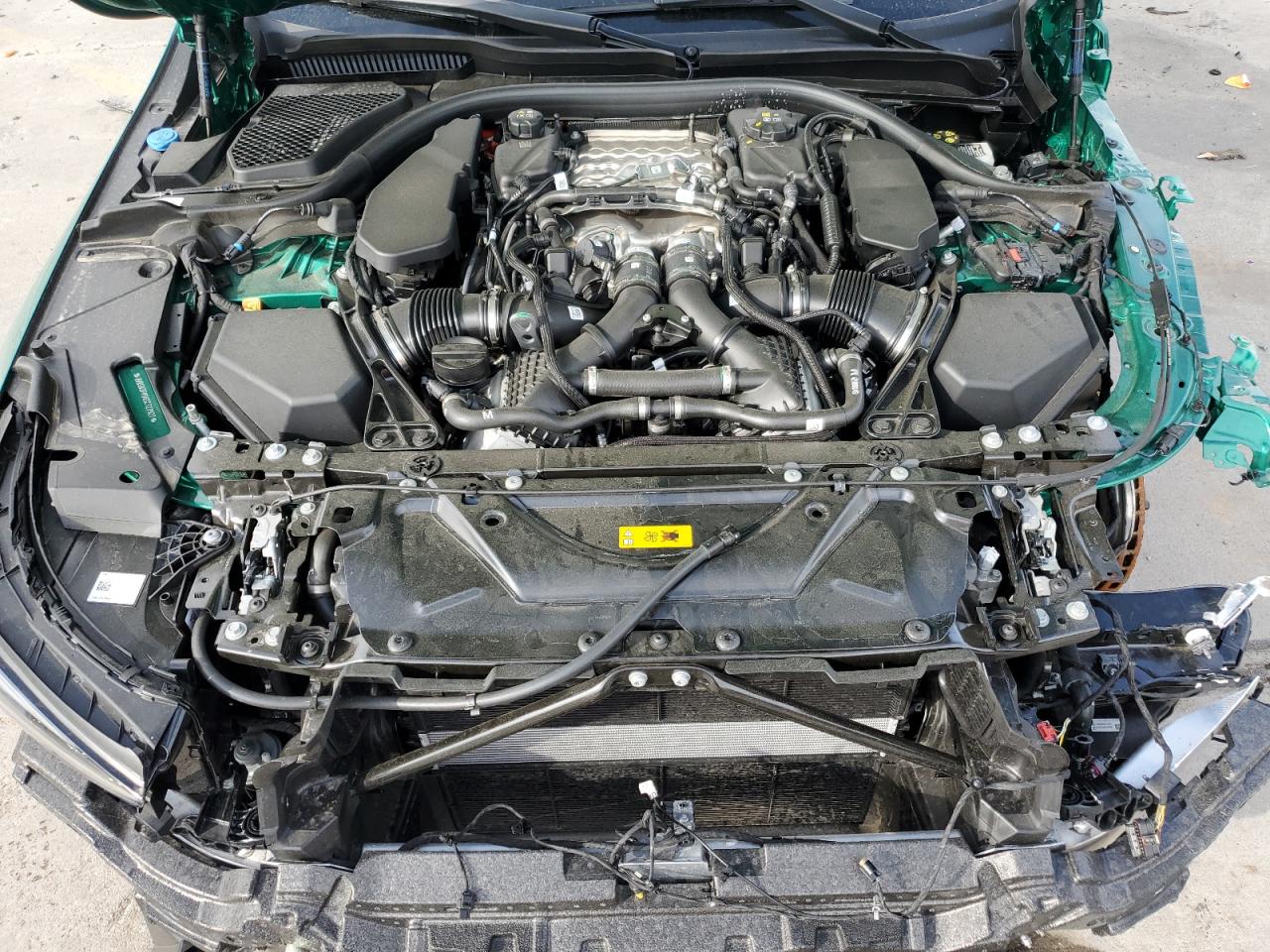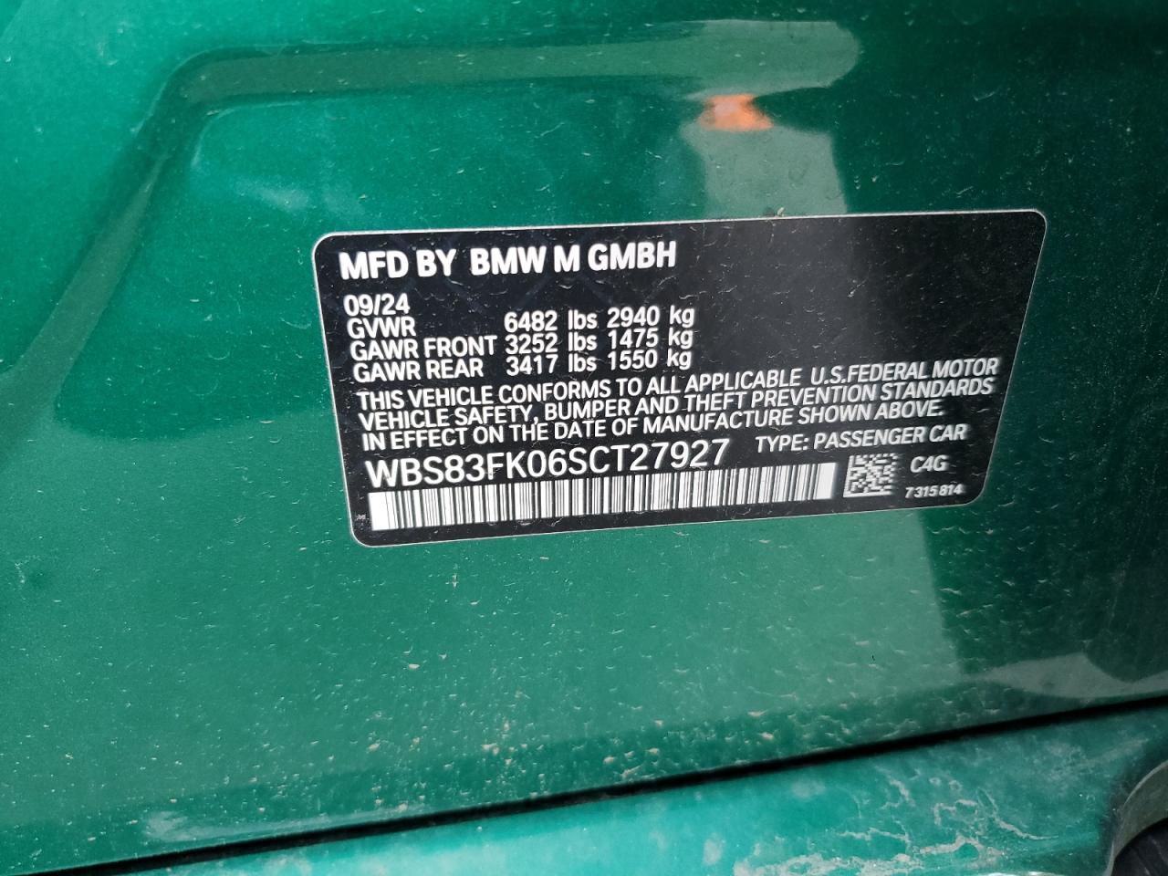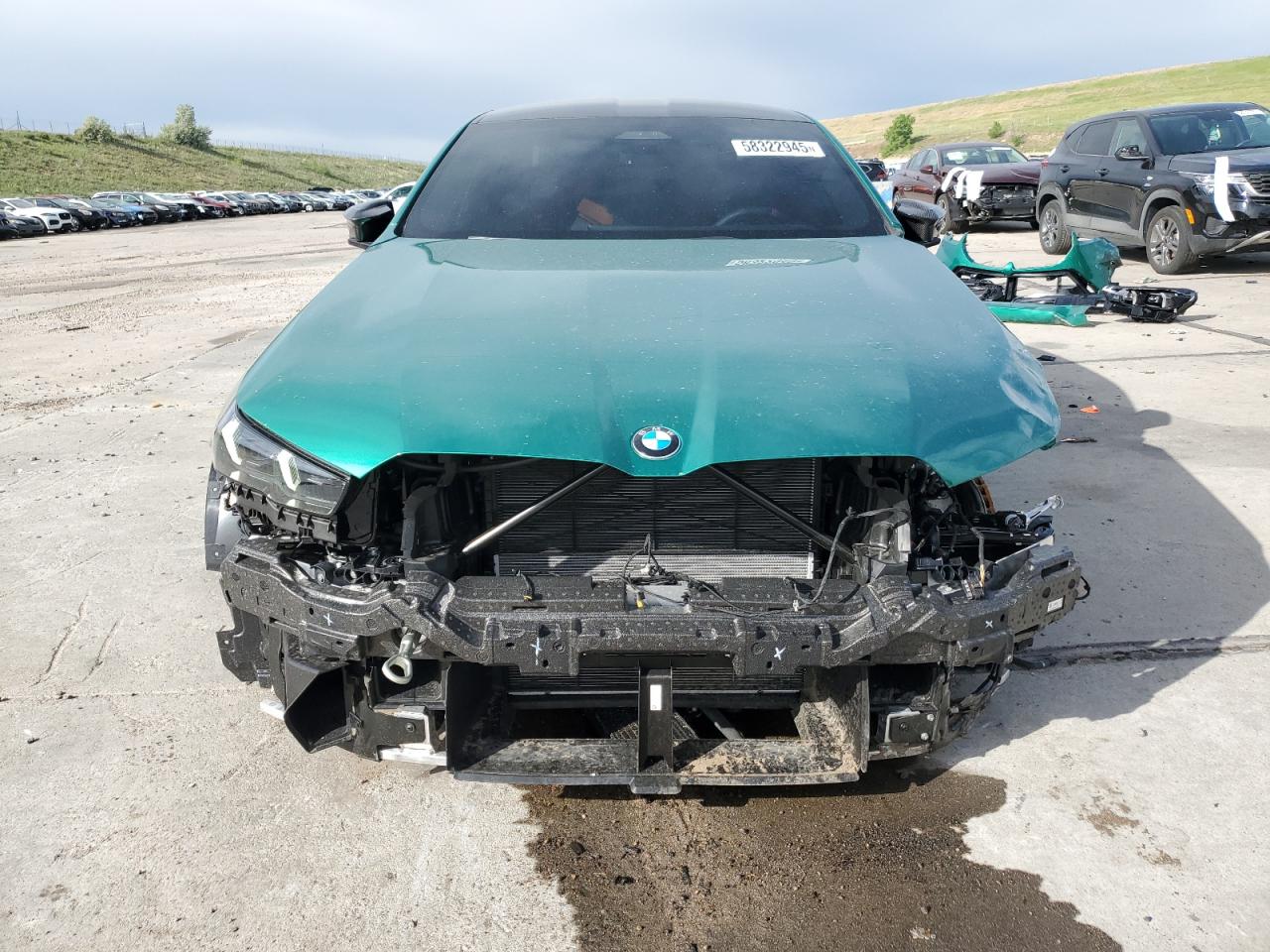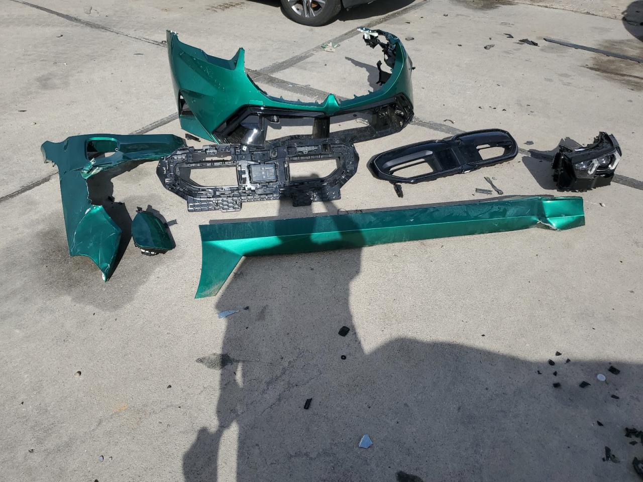 FairThis is a 2025 BMW M5 with significant front-end damage, appearing green in color. The vehicle's Run & Drive status is verified. The car has sustained extensive frontal impact. The front end is severely damaged, with components missing. The wheels appear intact, but the front lights and glasses may be compromised due to the crash. The interior shows signs of use with orange seats, suggesting it's in good condition.