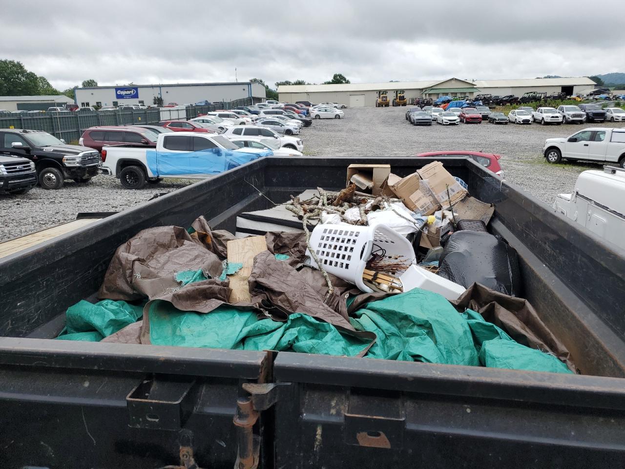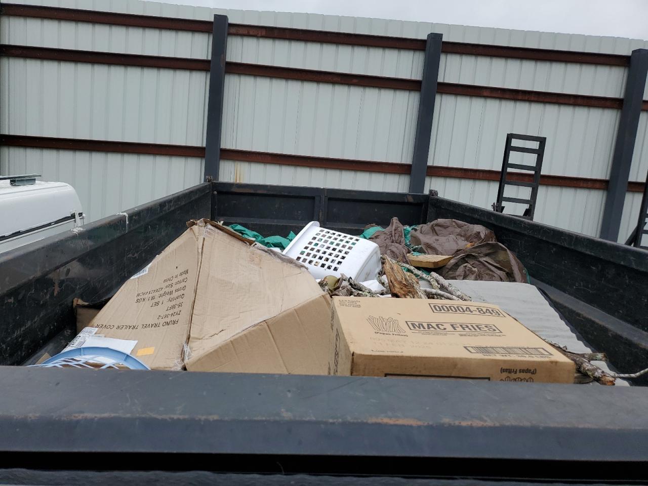 The trailer has body damage on the exterior, normal wear and tear is visible. There is no damage to the interior.