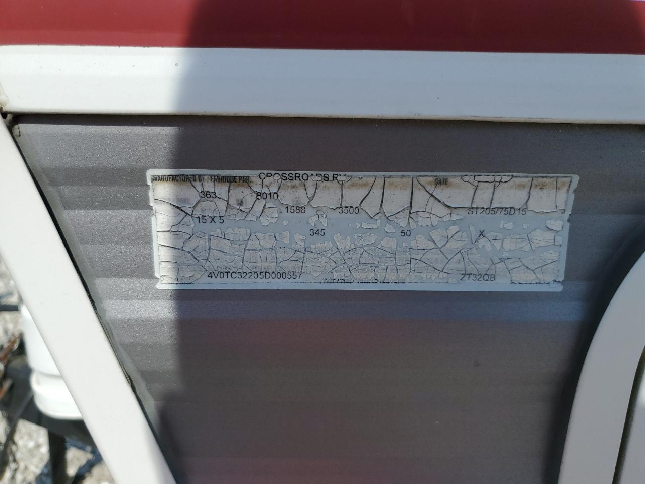FairThe 2005 CROSSROADS ZINGER 32QB is a white travel trailer. The primary damage is hail damage, and there is no secondary damage. The vehicle appears to be drivable. Interior condition is considered good while the exterior is fair. The car shows moderate visible damage, requiring potential repair.