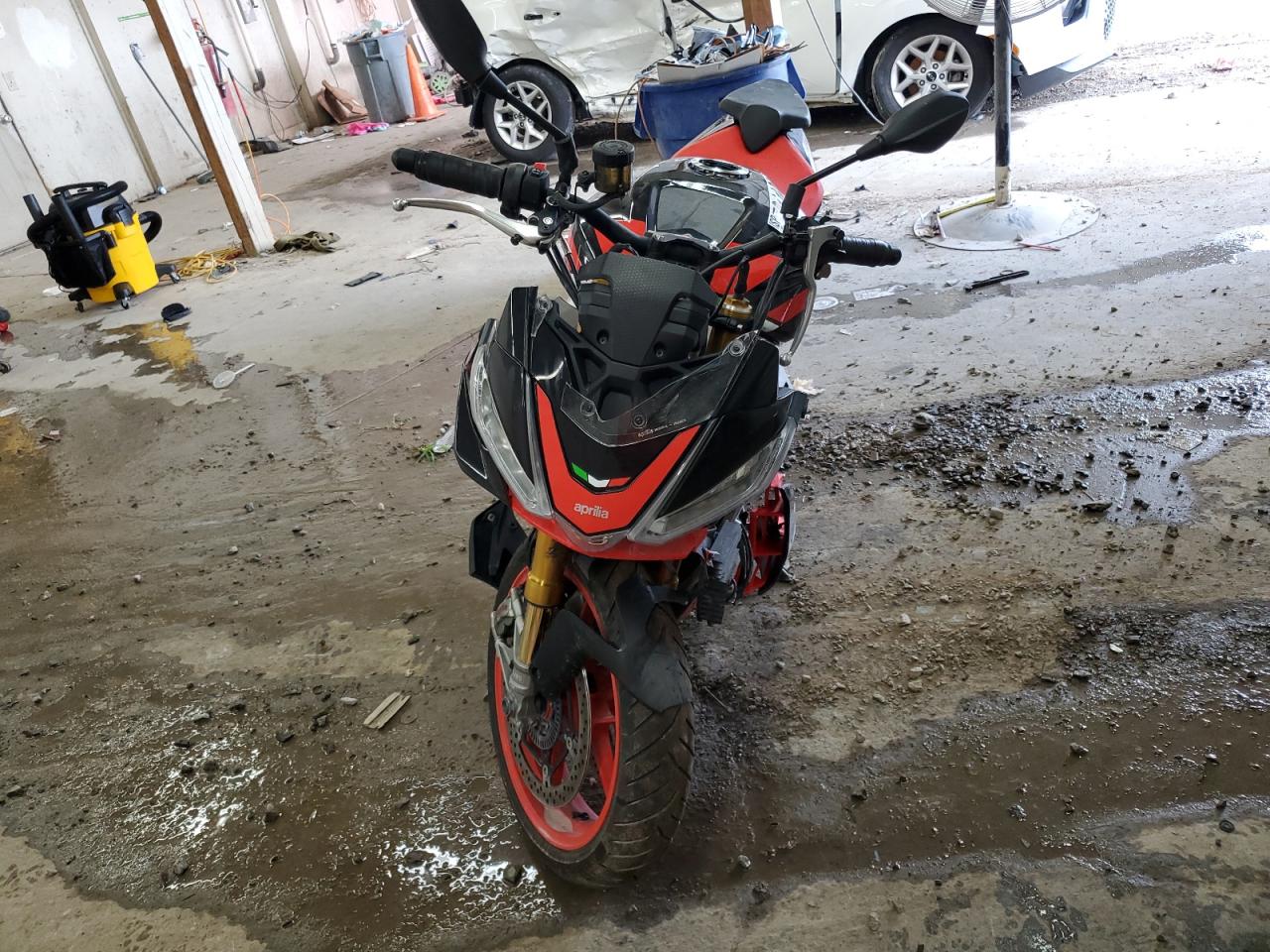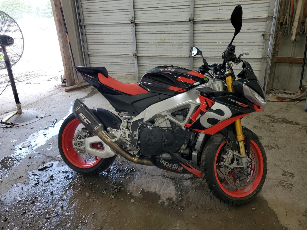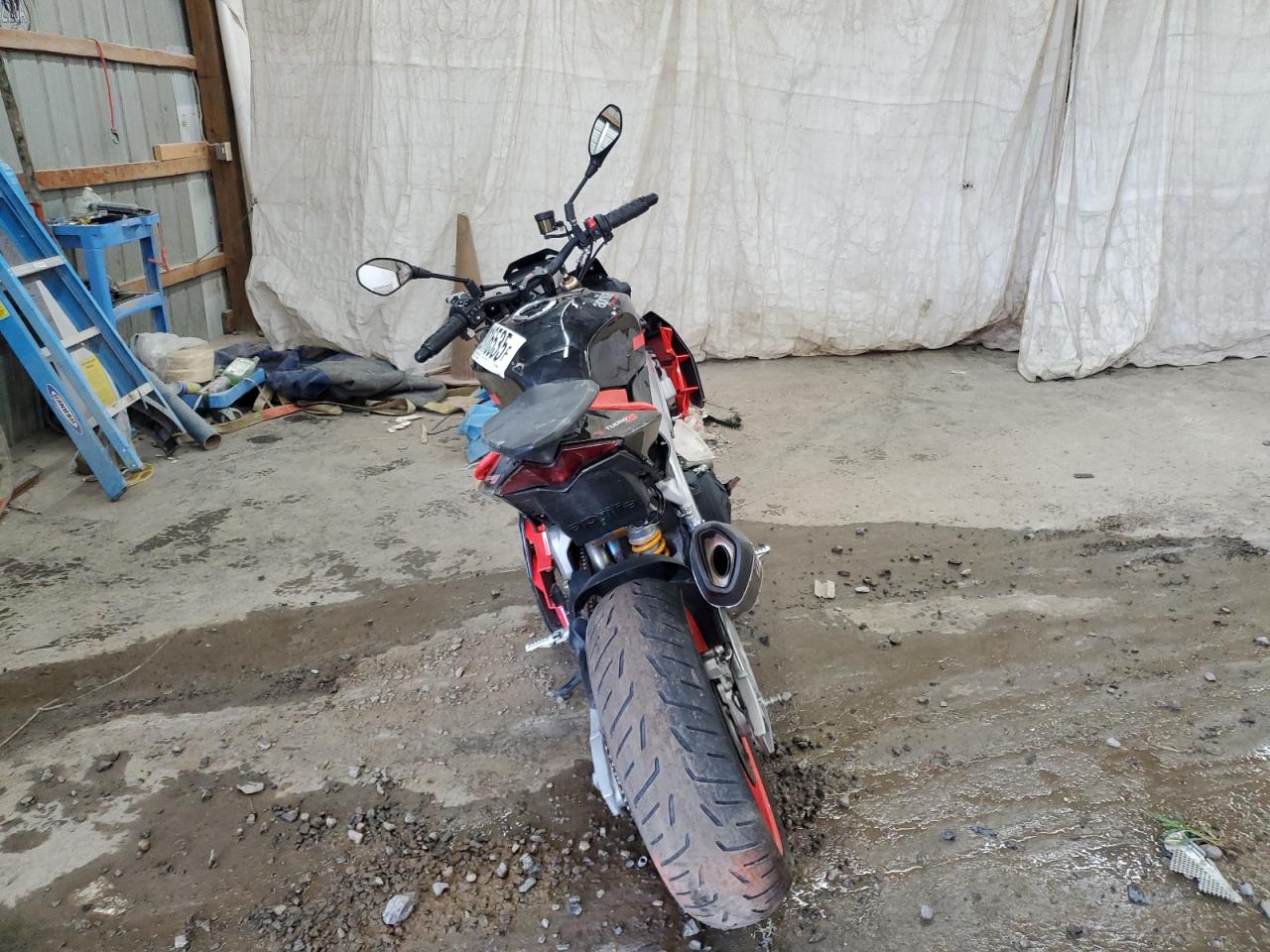 FairThe APRILIA TUONO V4 F 2021 is a motorcycle with primary front-end damage and secondary side damage. The color is black. The vehicle damage category is Body. The exterior condition is Fair, and the interior condition is Good. The overall state of the vehicle is Fair.