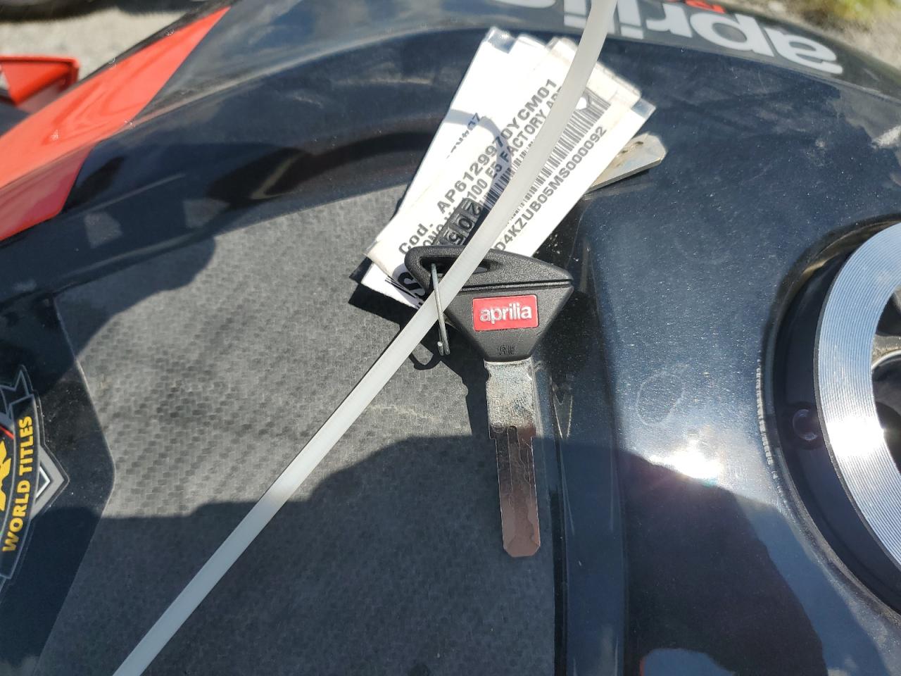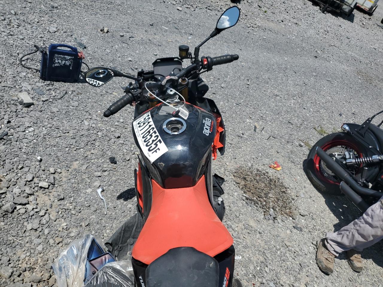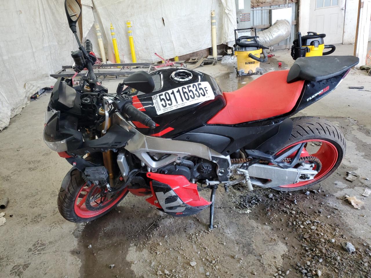 FairThe APRILIA TUONO V4 F 2021 is a motorcycle with primary front-end damage and secondary side damage. The color is black. The vehicle damage category is Body. The exterior condition is Fair, and the interior condition is Good. The overall state of the vehicle is Fair.