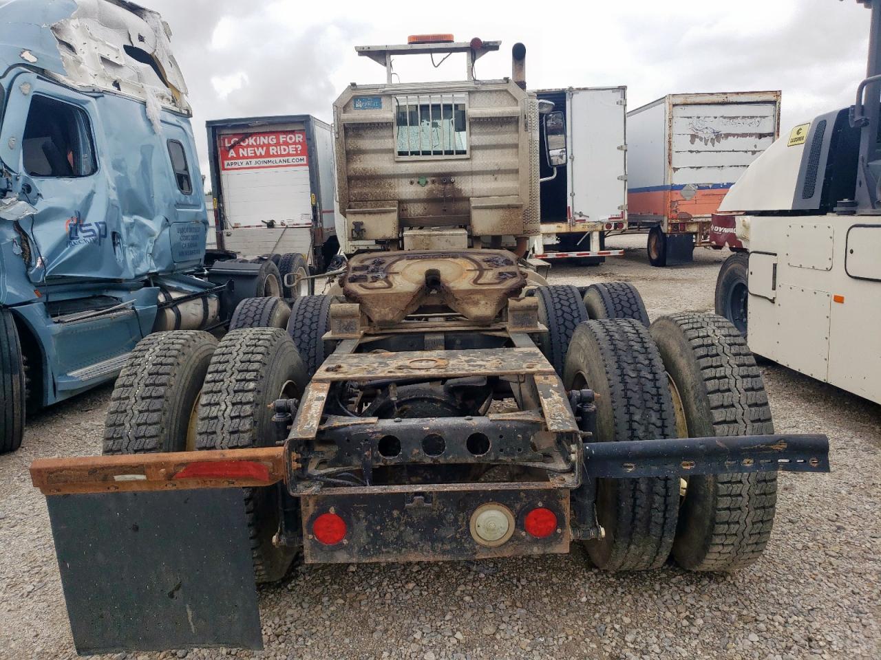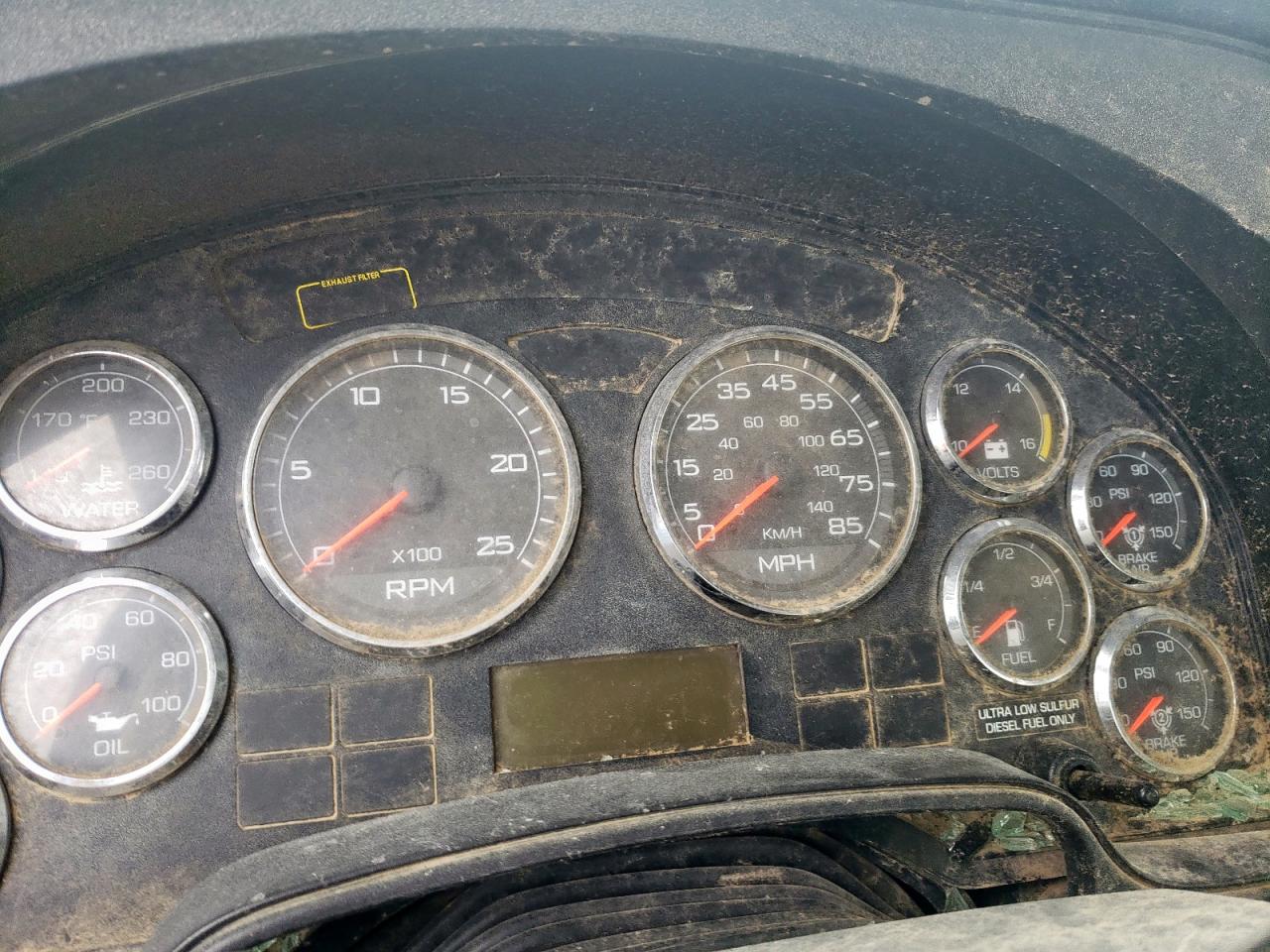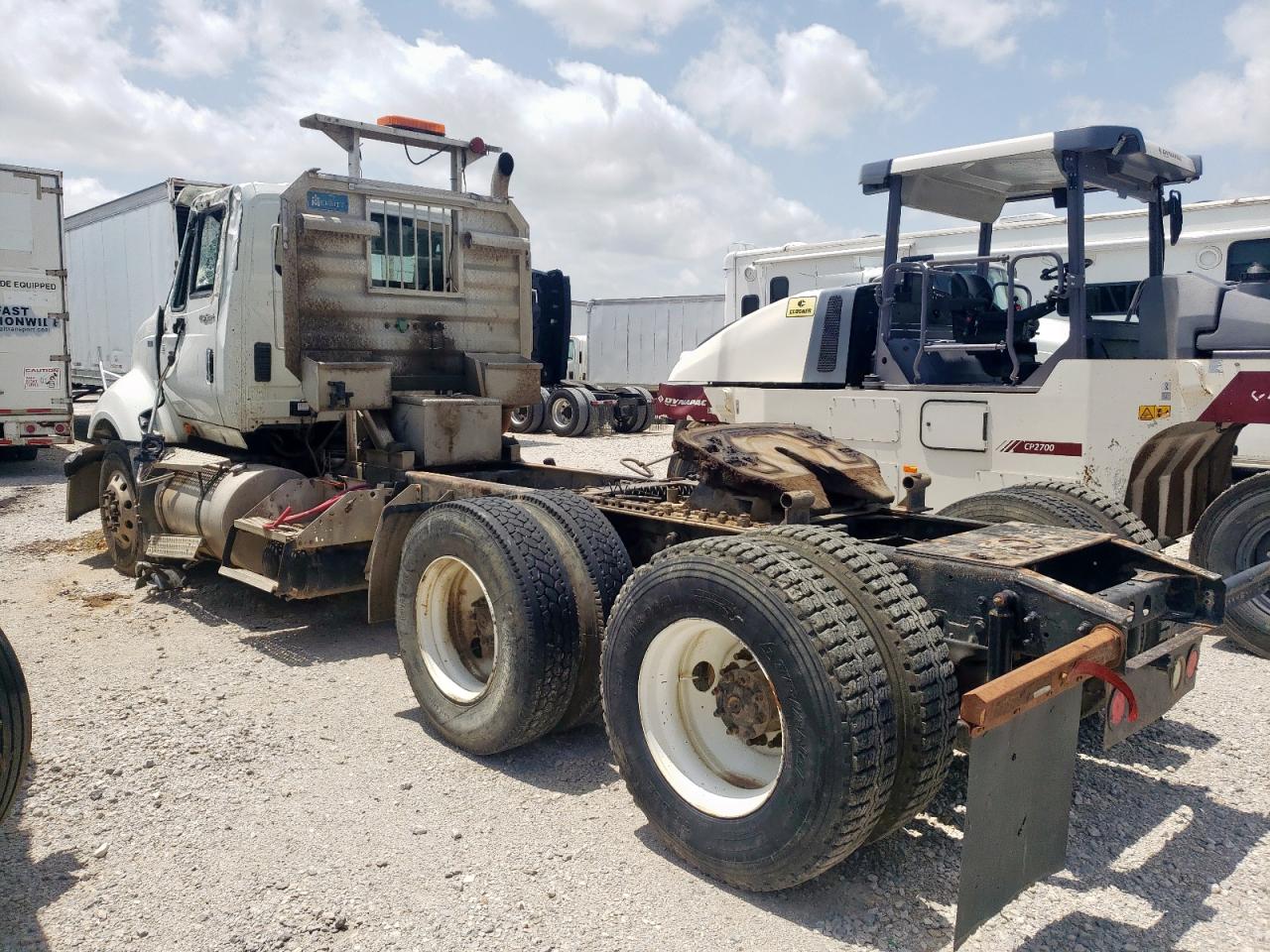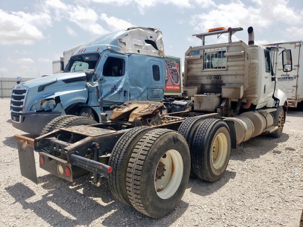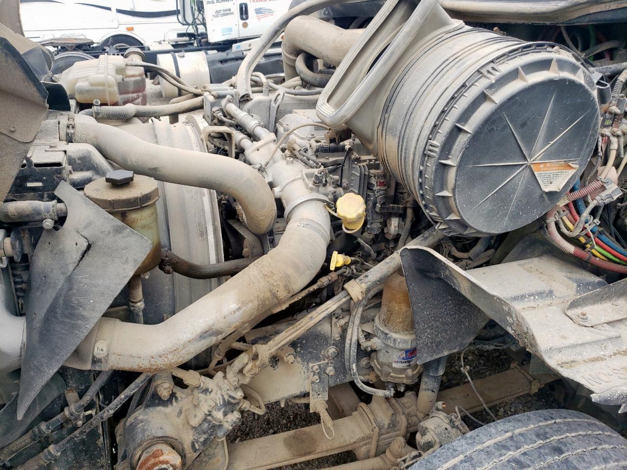 FairThe INTERNATIONAL PROSTAR 2013, white in color, shows significant damage. The primary damage is to the front end, with secondary damage on the side. The windshield is severely cracked, and the front grille is missing. The interior appears dirty and damaged. This vehicle requires considerable repair.