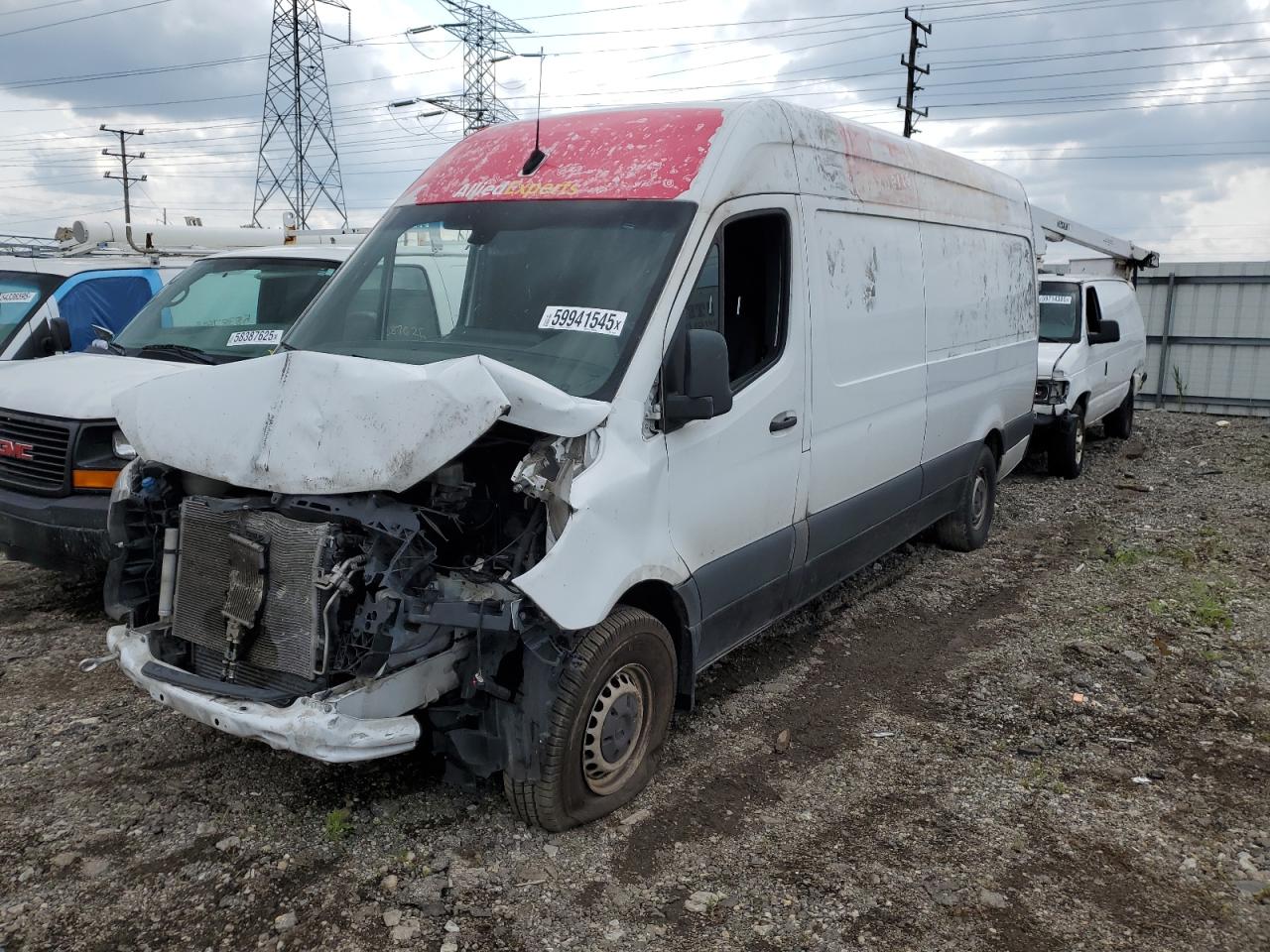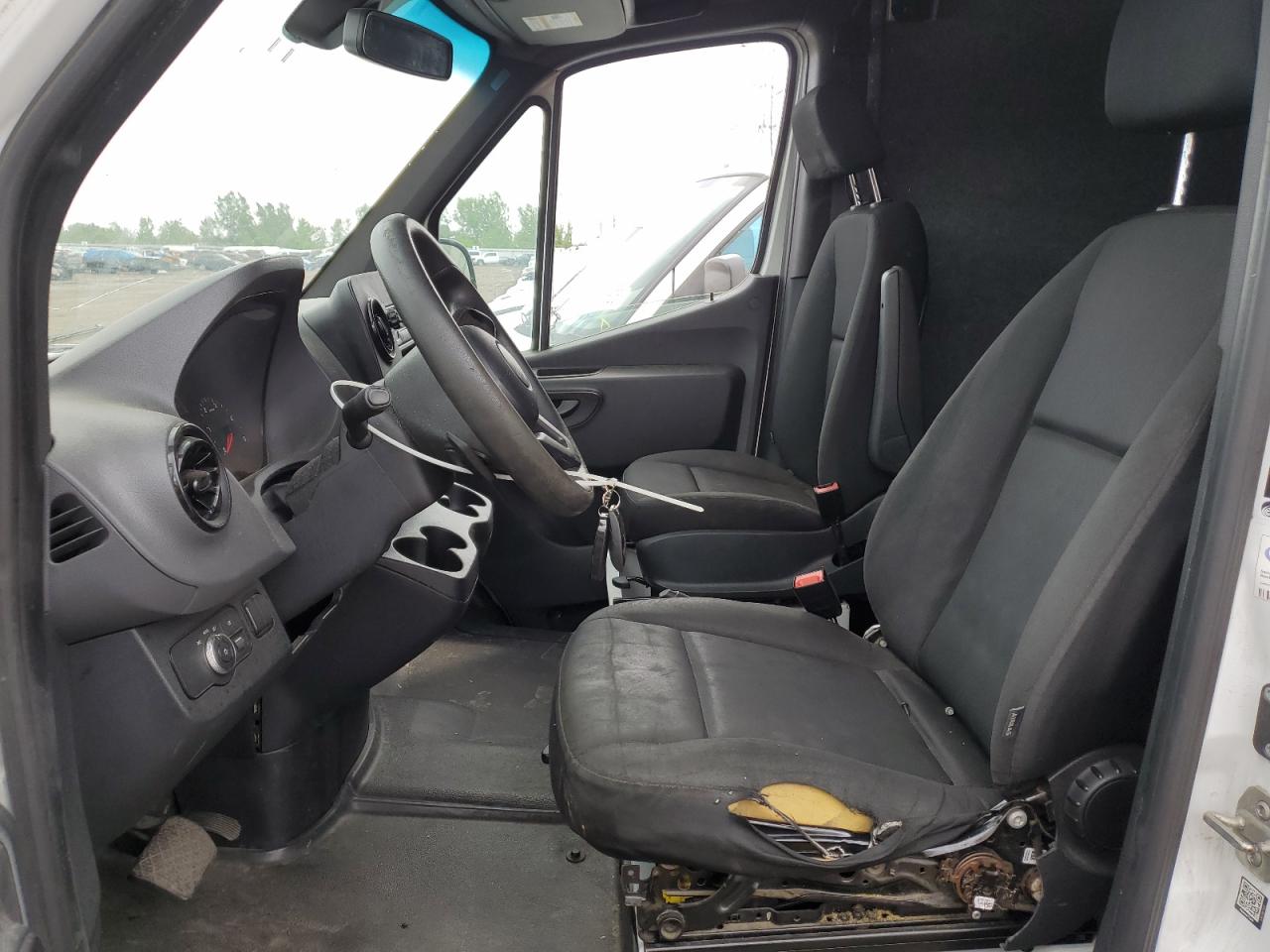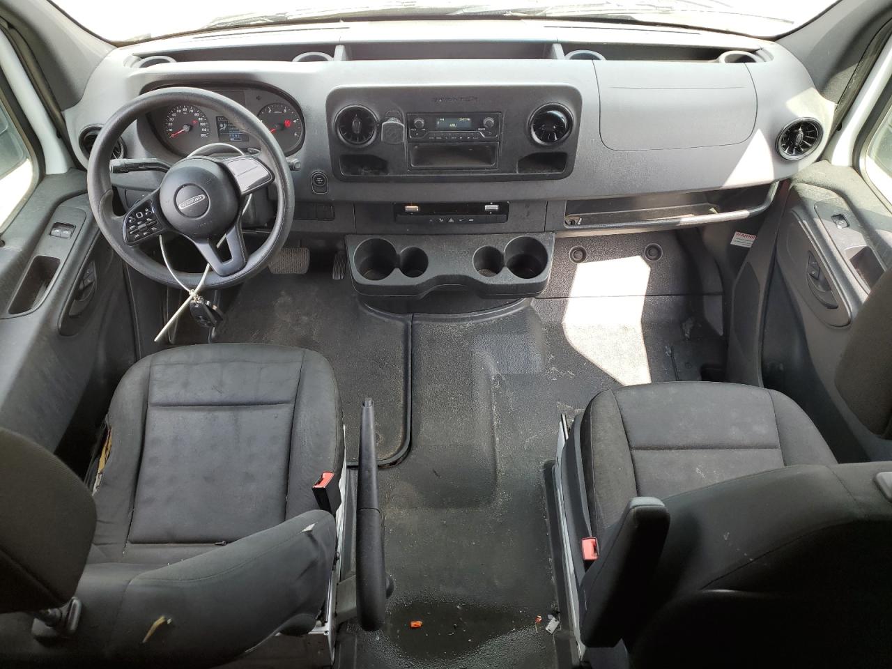 FairThis white 2019 FREIGHTLINER SPRINTER 2 shows significant front-end damage, indicating a potential collision. The body panels are affected. The interior appears to be in decent condition, with moderate wear and tear. The vehicle's overall state suggests it requires some repair but may still be drivable.