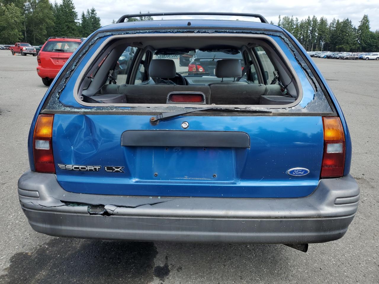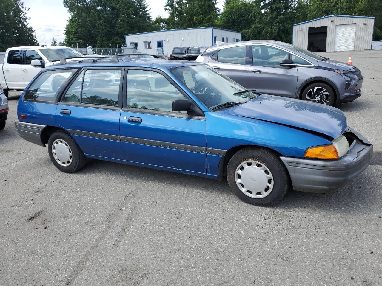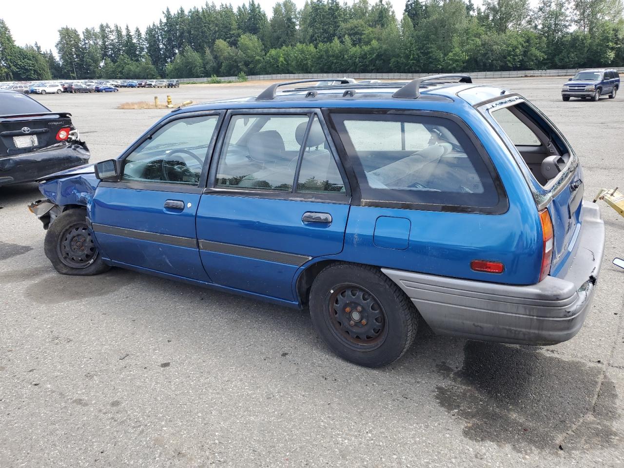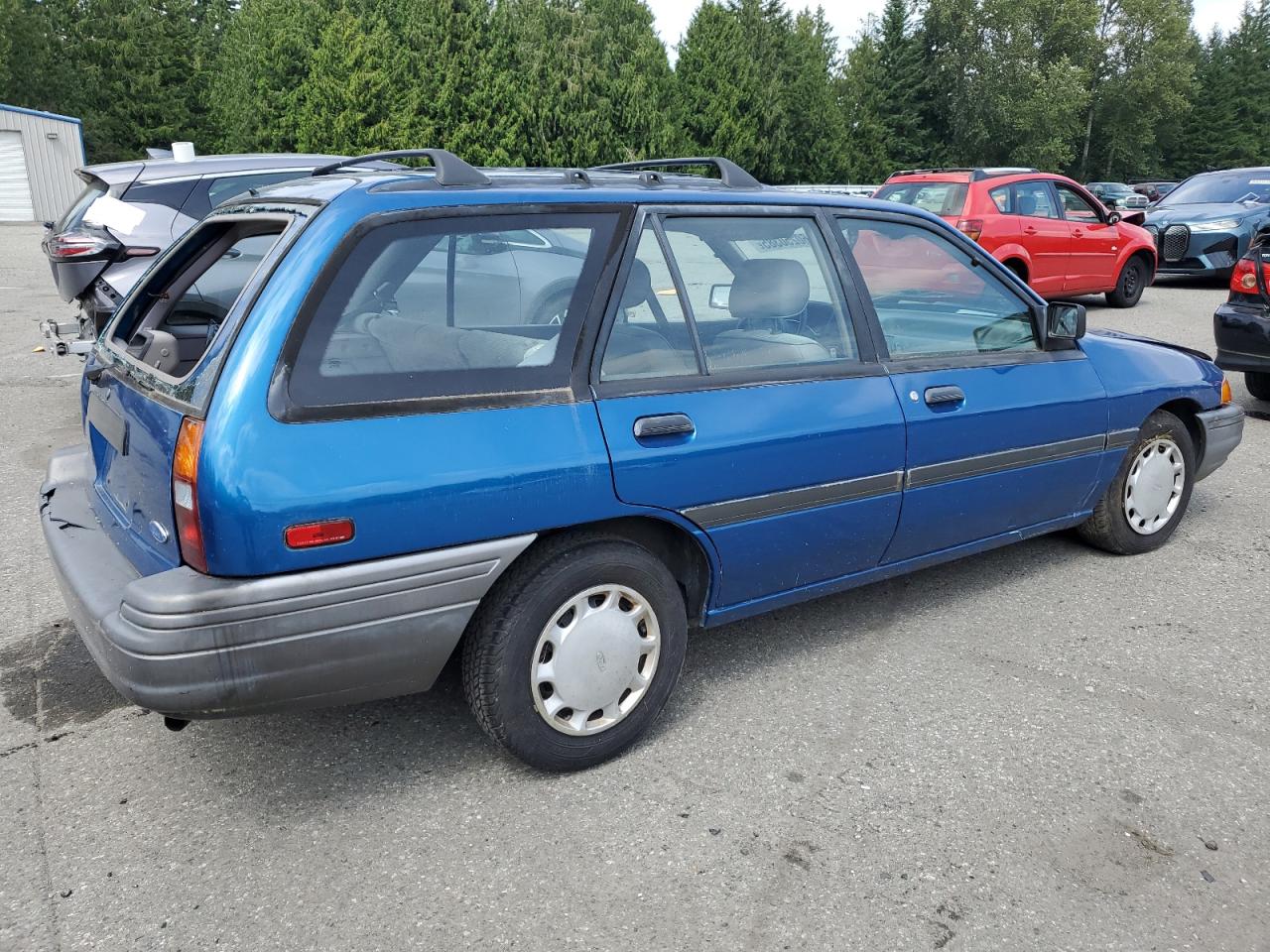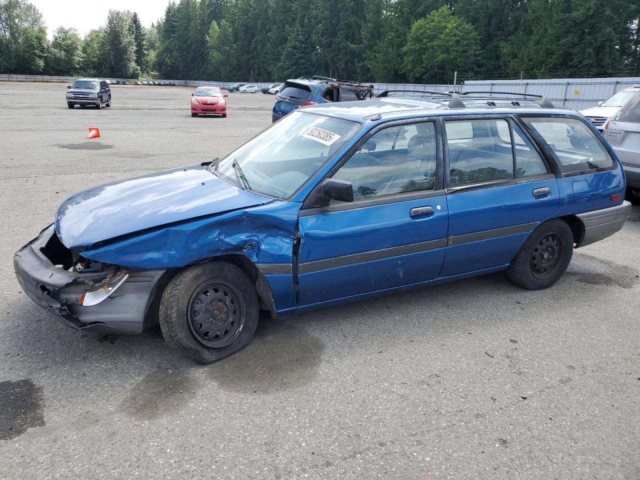 FairThis is a 1992 Ford Escort LX, showing significant damage. The primary damage is to the front end, with secondary damage to the undercarriage. The car's blue paint is visible, but the front end suffered considerable impact. The wheels appear to be intact, and the windows show signs of damage or removal. The interior shows wear and tear, but the airbag status cannot be determined from the images.