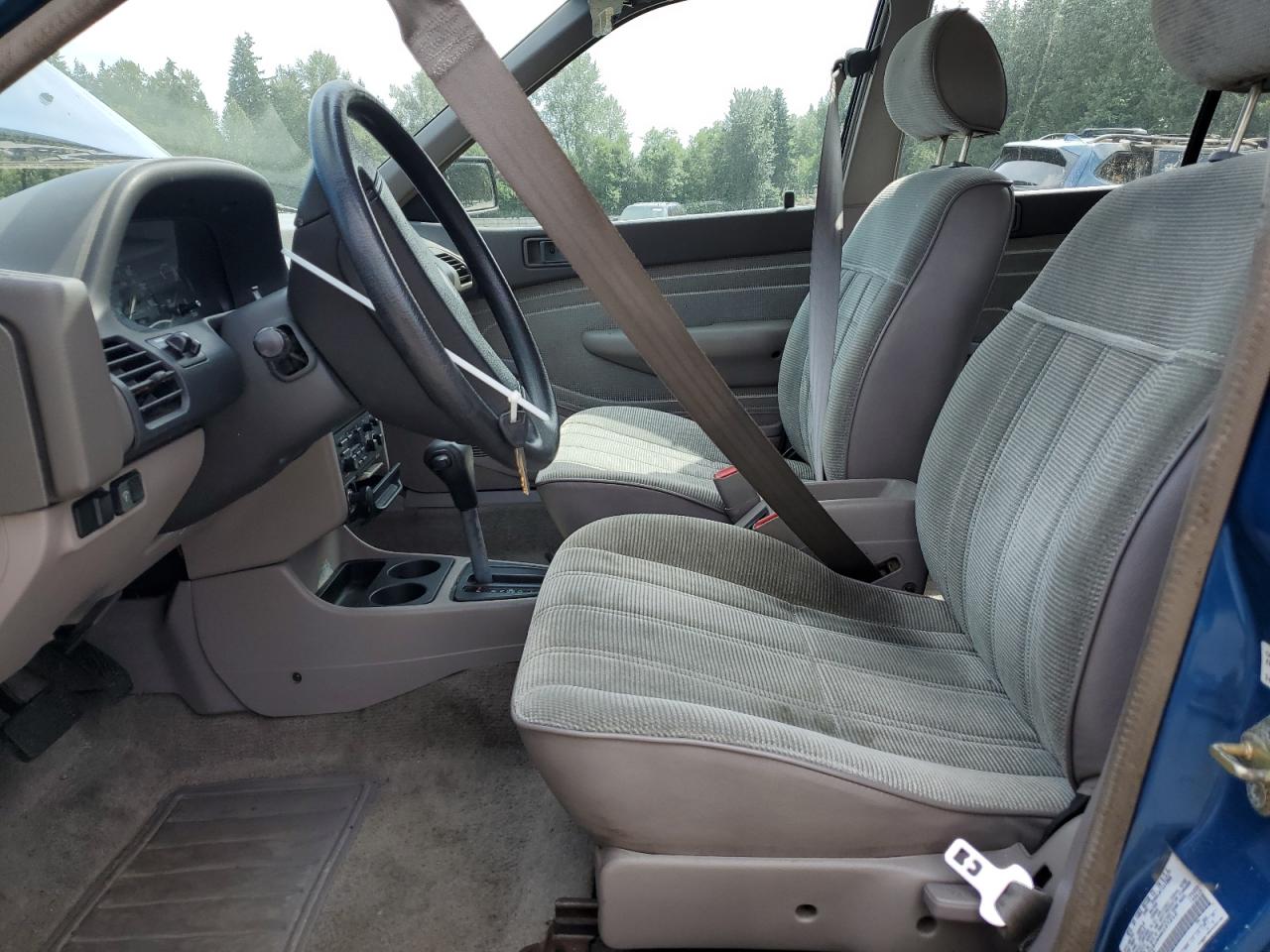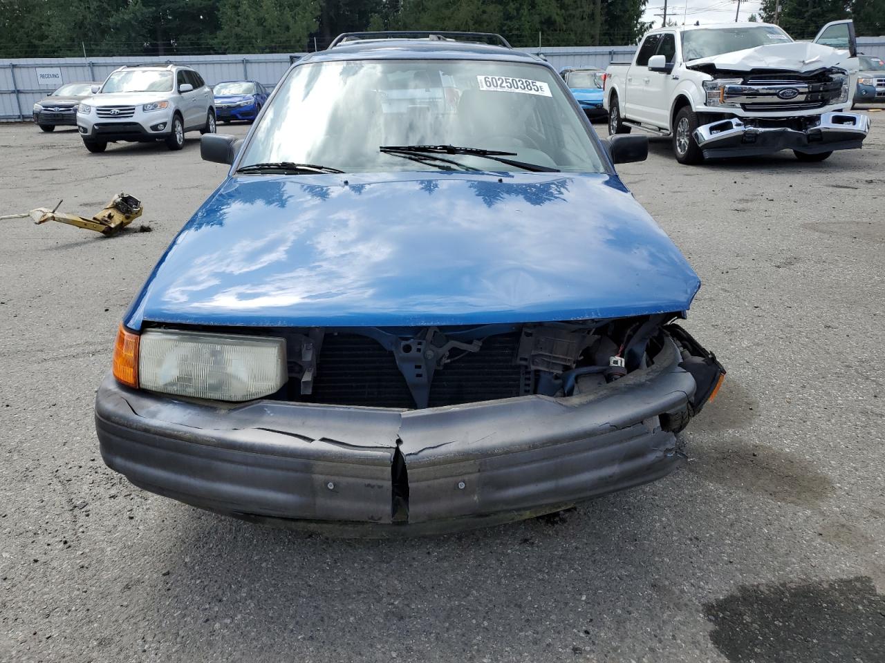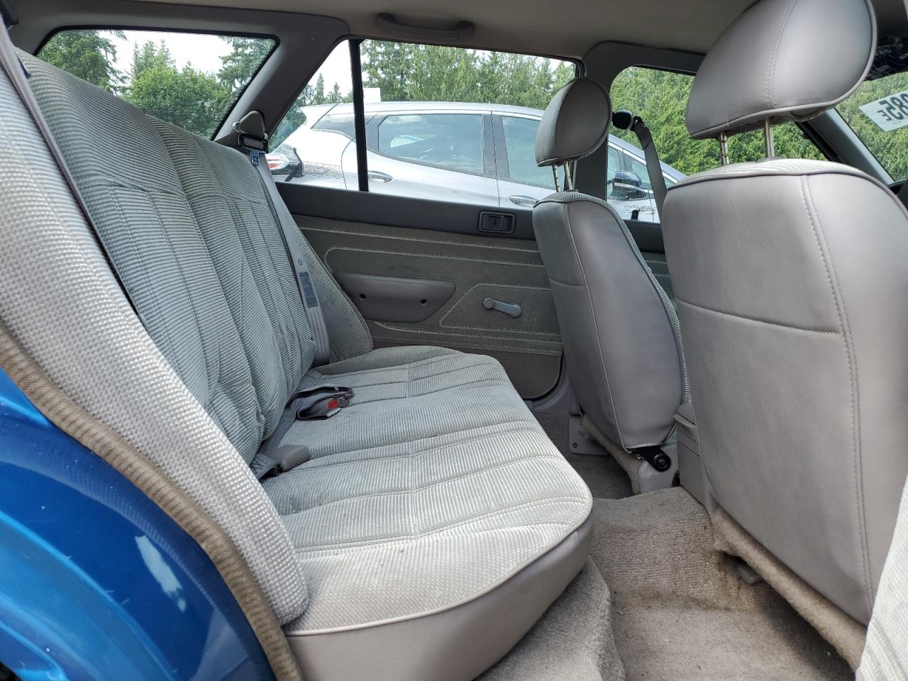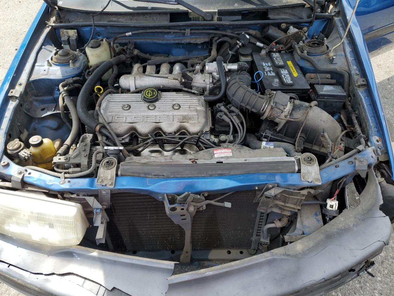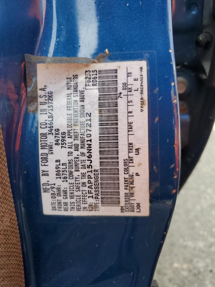 FairThis is a 1992 Ford Escort LX, showing significant damage. The primary damage is to the front end, with secondary damage to the undercarriage. The car's blue paint is visible, but the front end suffered considerable impact. The wheels appear to be intact, and the windows show signs of damage or removal. The interior shows wear and tear, but the airbag status cannot be determined from the images.