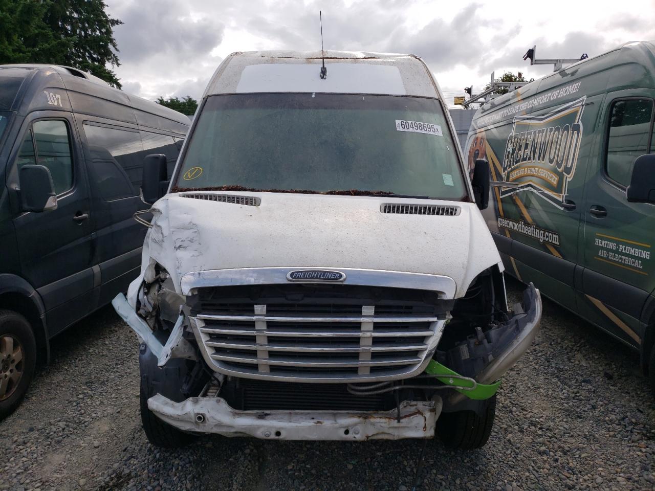 FairThe FREIGHTLINER SPRINTER 2 2013, a white van, exhibits significant front-end damage, including a crushed front fascia, suggesting a collision. The body panels show damage, indicating a Body damage category. The interior shows signs of wear and tear, potentially affecting the dashboard and seats. Damage to the front end is evident, with the lights and front glass are likely affected. The vehicle is drivable, but extensive repairs are needed.