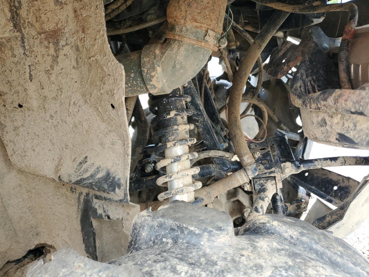The ATV's body panels exhibit moderate visible damage. Details on the specific areas are needed for a comprehensive assessment, but the damage is substantial enough to affect the overall appearance. Further inspection is required to determine if there is any structural damage.