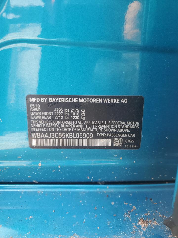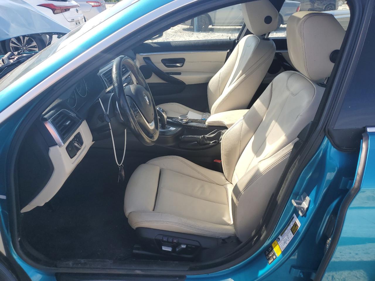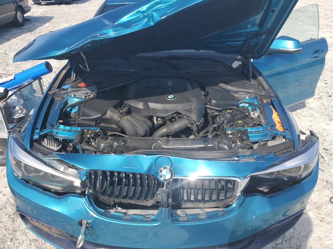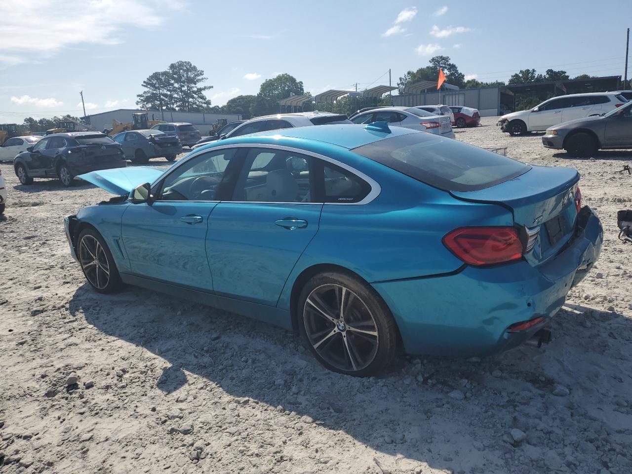 FairThe 2019 BMW 430i xDrive Gran Coupe is a blue-colored vehicle with significant damage primarily to the front and rear ends. The front end exhibits extensive damage, with visible impact and potential structural issues. The rear end also shows damage. The interior appears to be in good condition with minimal wear and tear. The wheels and lights are present but the body has visible damage. There is potential airbag deployment. The car is likely drivable but requires significant repairs.