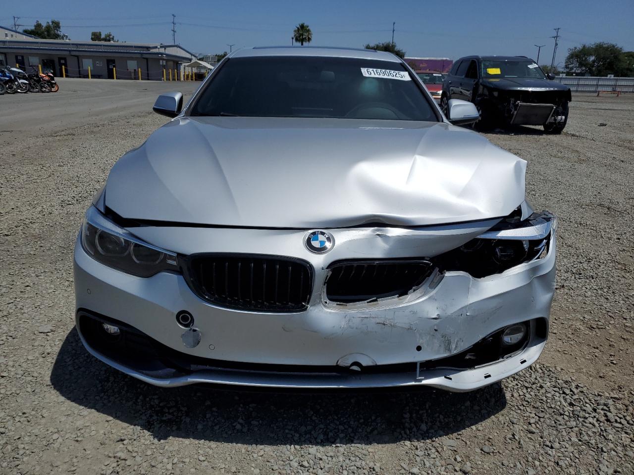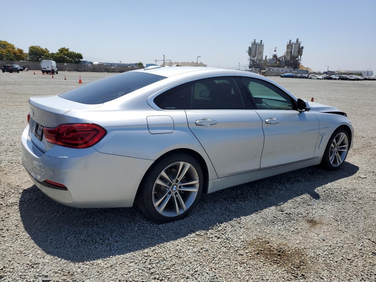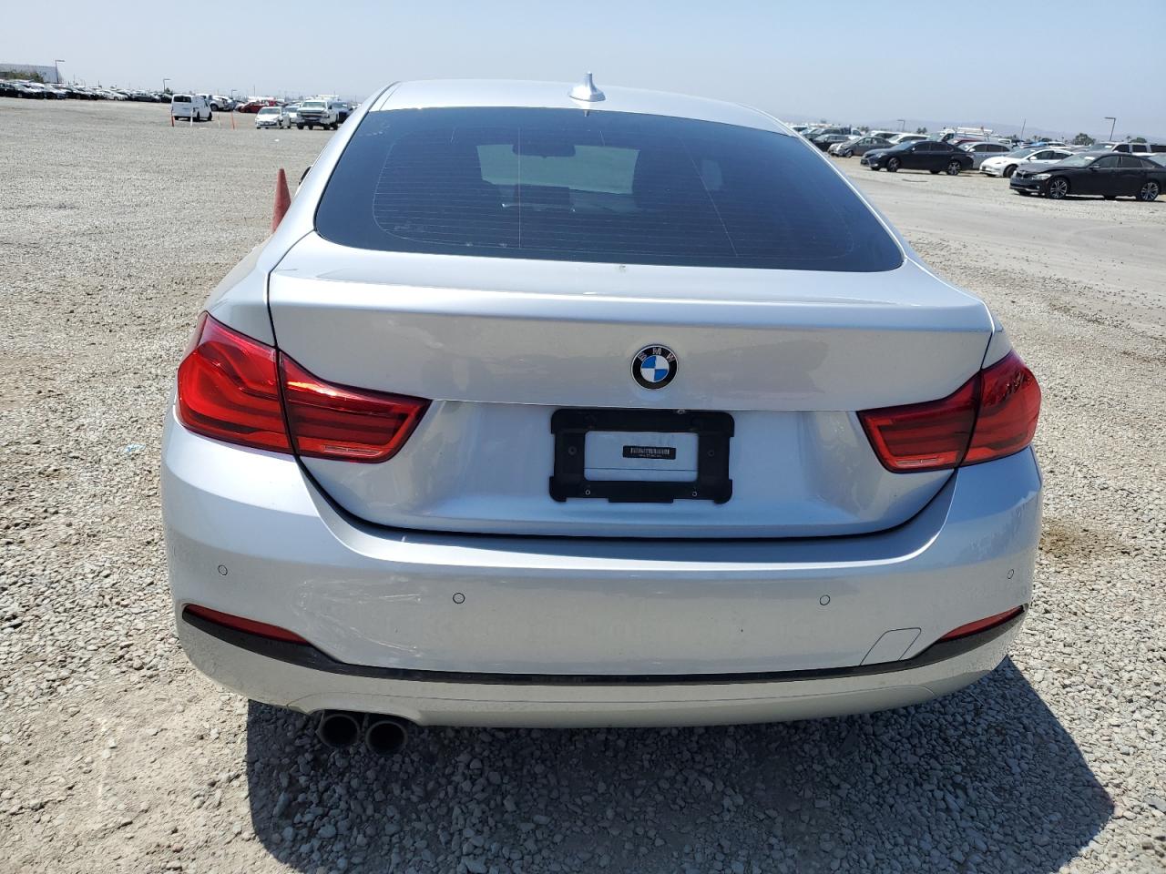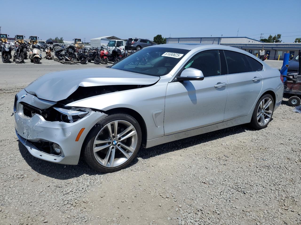 FairThe 2018 BMW 430i Gran Coupe is silver. The front end shows significant damage. The car's body panels are impacted. The interior appears to have airbag deployment. The wheels and lights appear intact. The glass is in good condition.