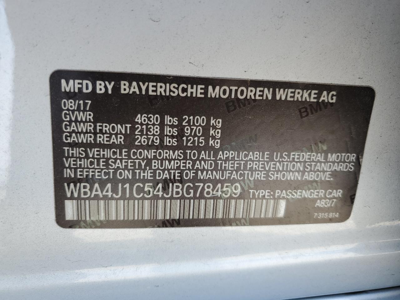 WBA4J1C54JBG78459Фінальна Ставка