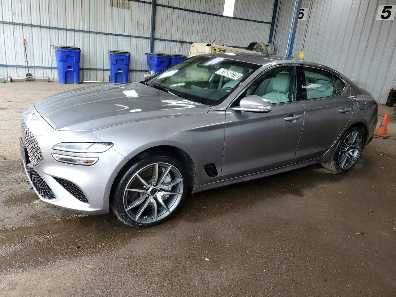 GoodGENESIS G70 BASE 2025 in silver with MECHANICAL and MINOR DENT/SCRATCHES damage. Vehicle Starts. The car shows signs of use, with visible minor damages but remains generally functional. The interior appears well-maintained, suggesting careful usage. The wheels and lights appear to be in good condition. The car itself is a luxury sedan, offering a blend of performance and comfort.