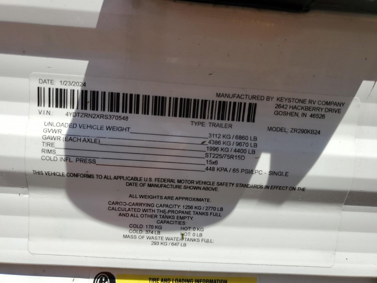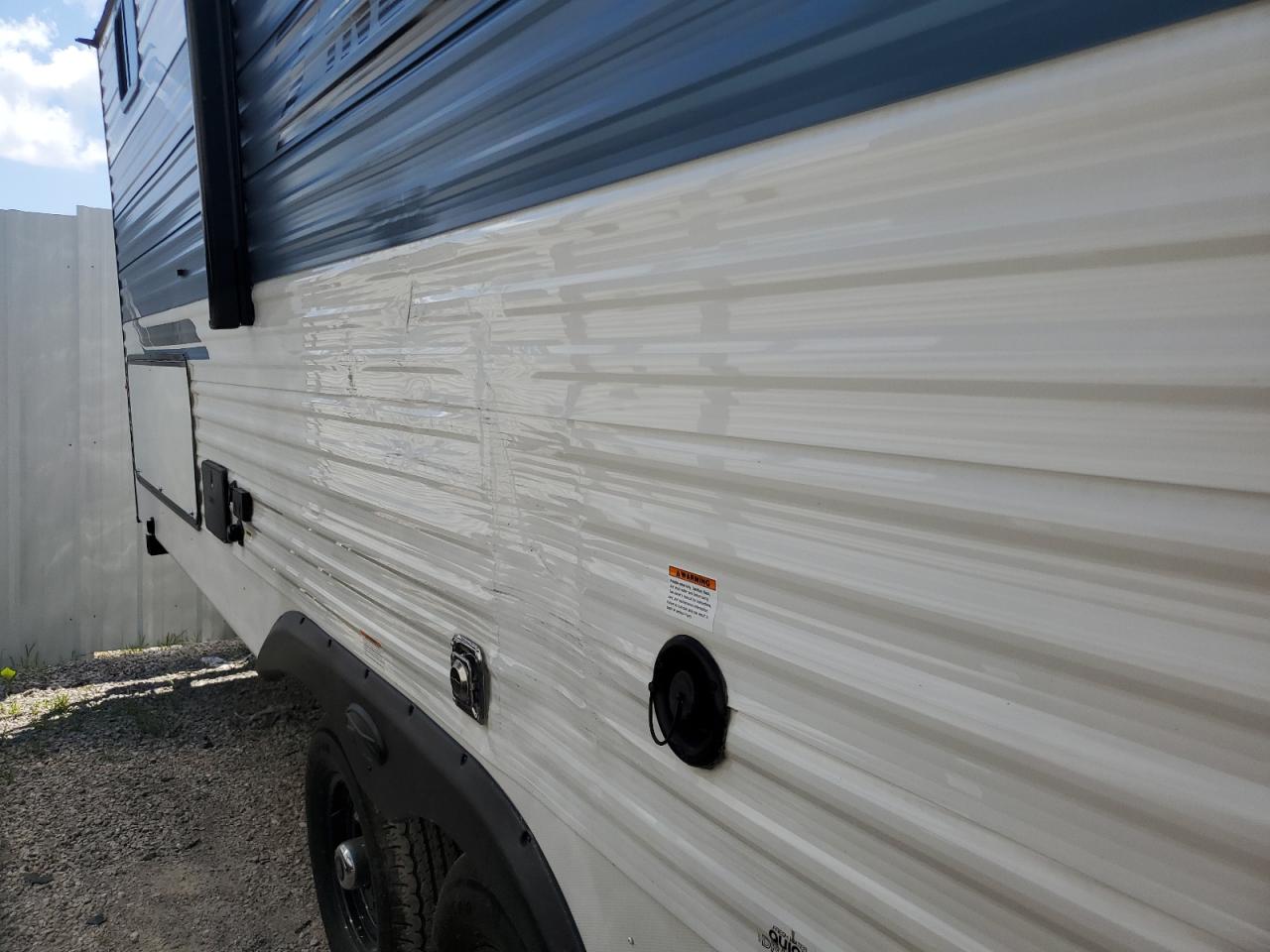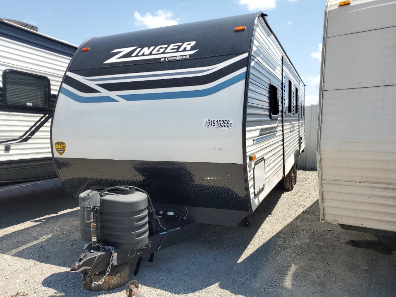 GoodThe CROSSROADS ZINGER 2024 presents with a two-tone color scheme and exhibits hail damage as the primary concern, affecting the side panels. The vehicle's overall condition is assessed as "Good," with minor to moderate visible damage. Wheels and lights appear intact, and the glass is in good condition. The vehicle is likely drivable, with cosmetic repairs needed.