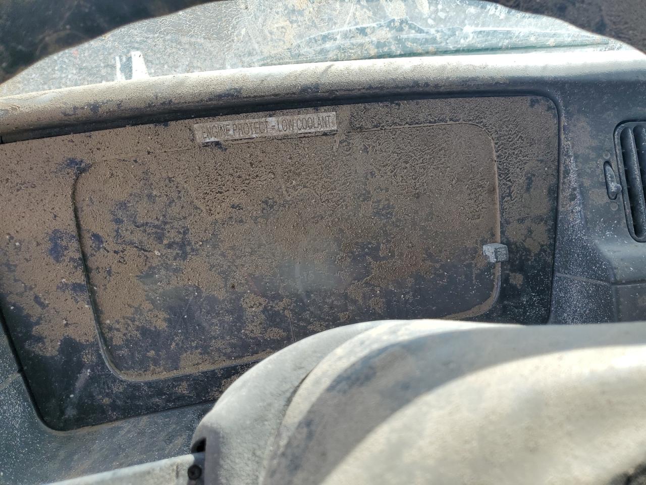 Front end and side damage, body panels are heavily damaged. This truck has suffered severe damage, requiring extensive repairs. Front-end collision damage, body damage, and potentially frame damage. The cab has a moderate level of damage, interior shows wear, windshield is cracked, and airbag status is unknown. Extensive damage, wrecked truck, salvage truck.