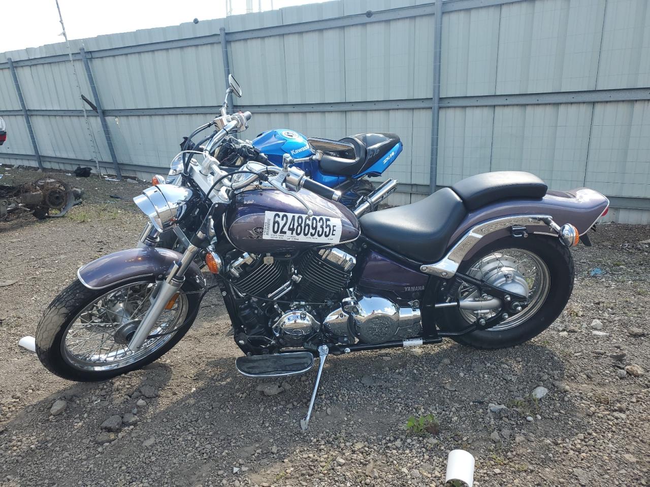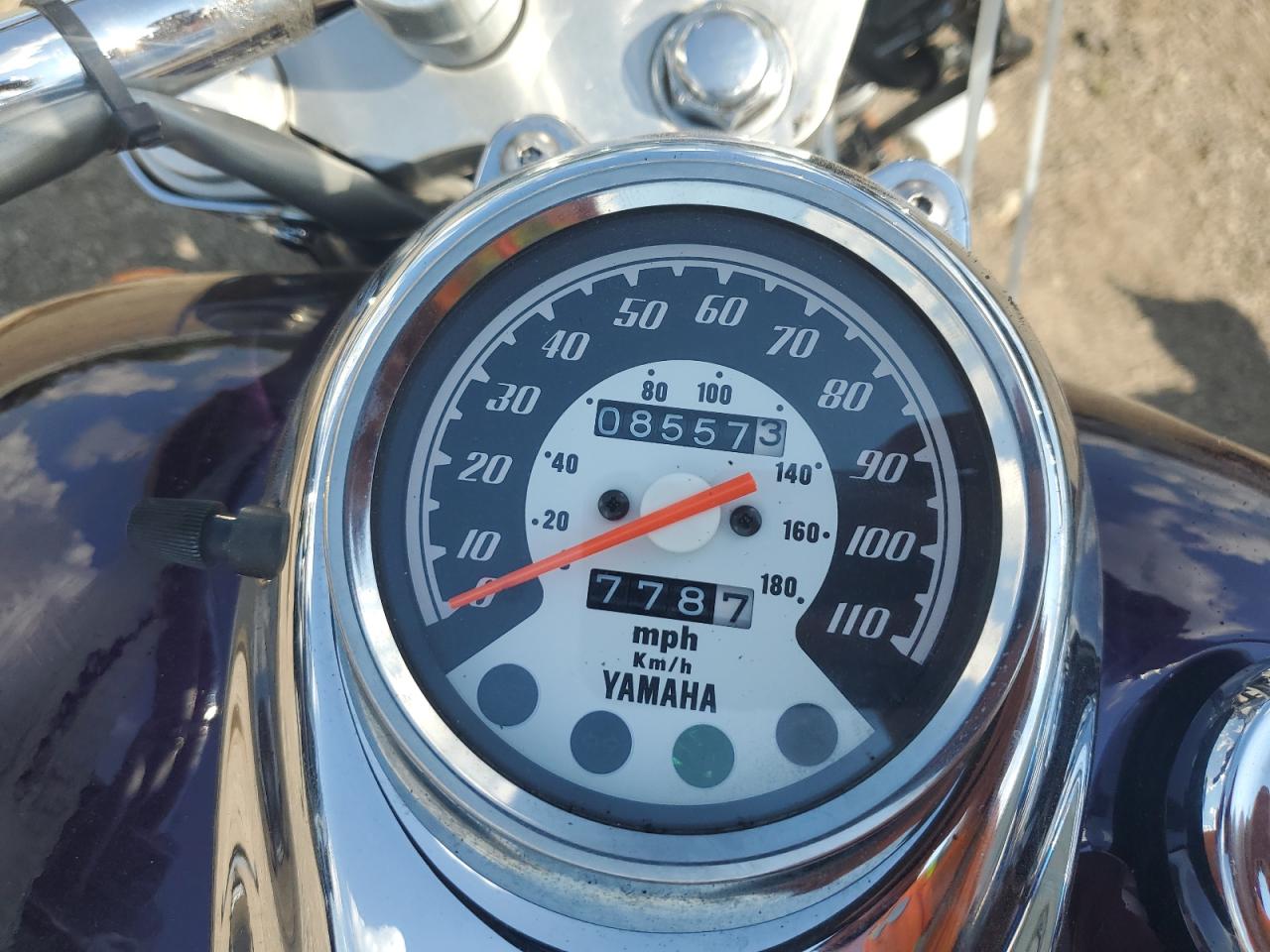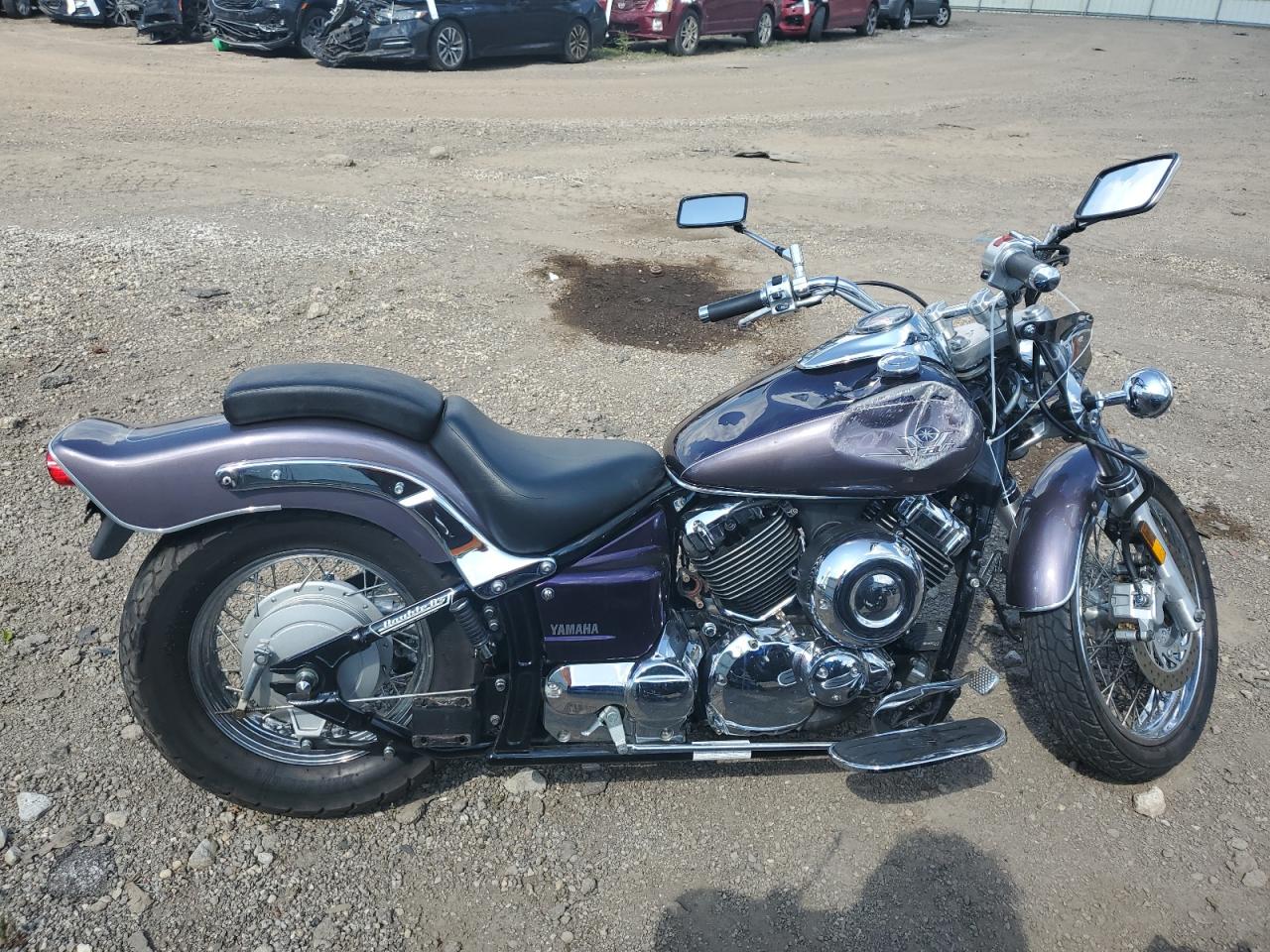 GoodThis is a 2003 YAMAHA VSTAR motorcycle with purple paint. The primary damage is on the SIDE, and there is no secondary damage. The motorcycle is drivable despite the damage.
