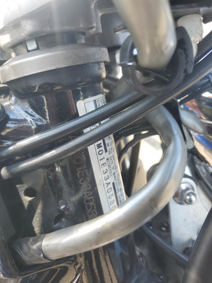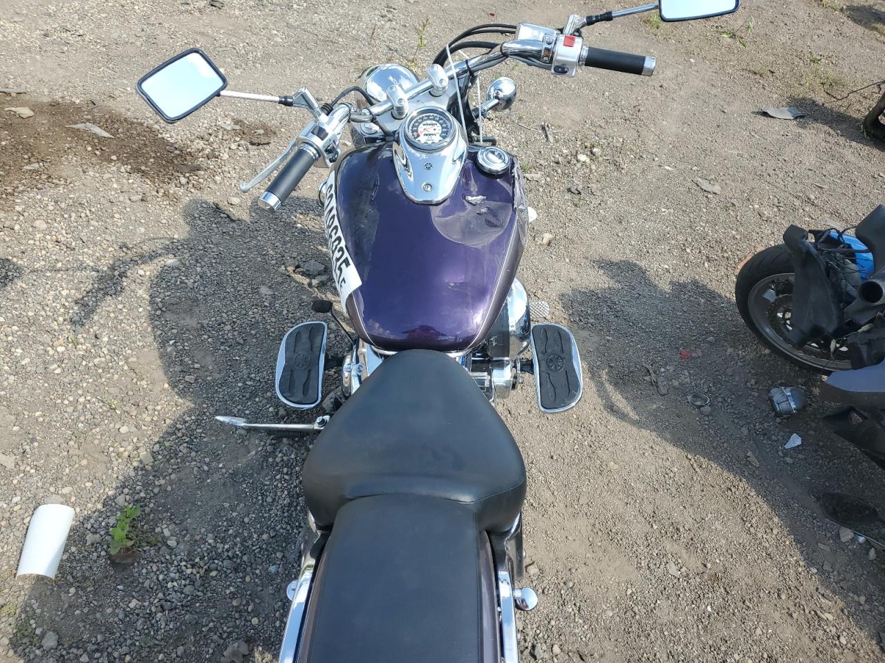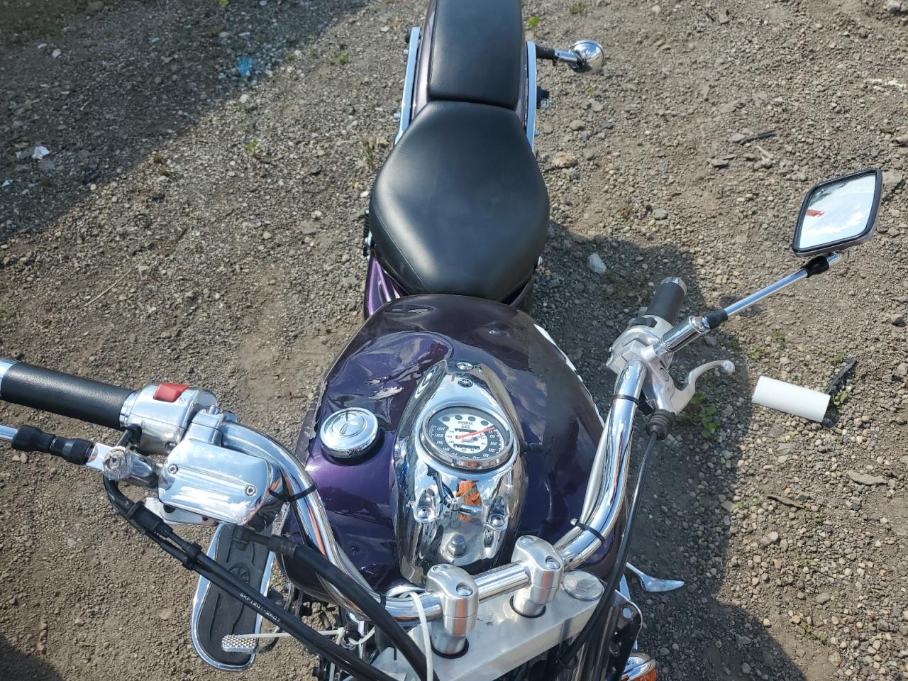 GoodThis is a 2003 YAMAHA VSTAR motorcycle with purple paint. The primary damage is on the SIDE, and there is no secondary damage. The motorcycle is drivable despite the damage.