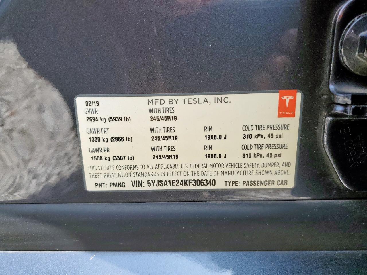 FairThis is a gray 2019 Tesla Model S with front-end and side damage. The car has sustained damage to the front end, with visible impact. The side also shows damage. The wheels appear to be intact, and the glass seems to be in good condition. The interior shows signs of damage, including airbag deployment. The odometer reads 45,823 miles.