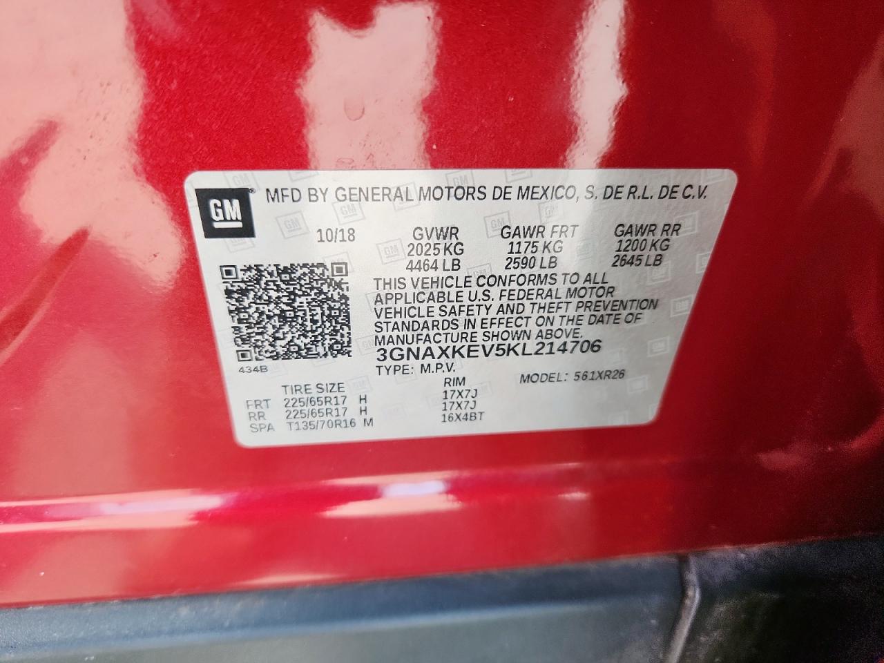 GoodThis is a 2019 CHEVROLET EQUINOX LT, red in color, with Run & Drive Verified status. The primary damage is hail with no secondary damage.