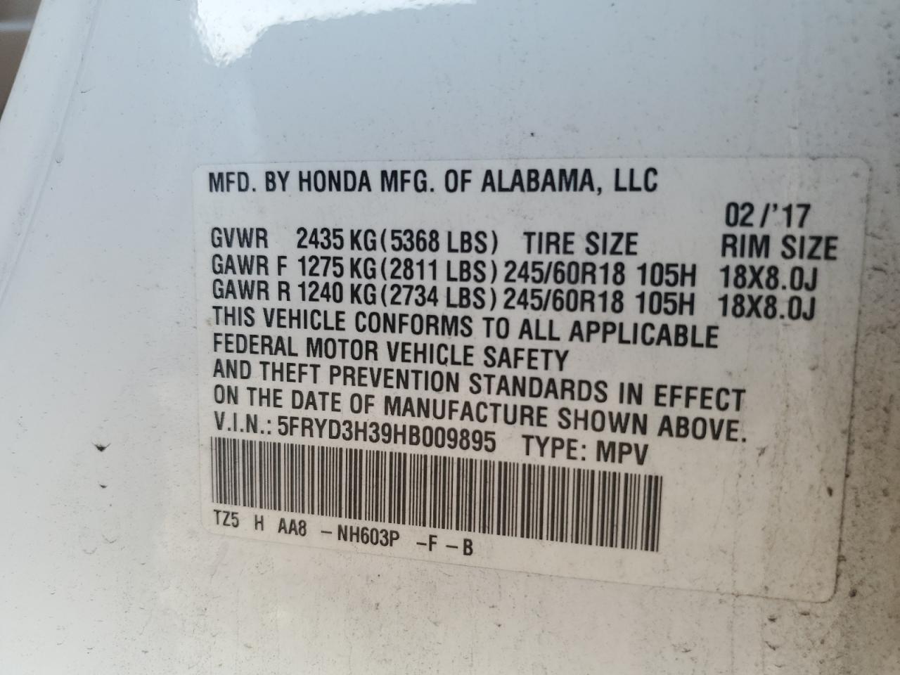 5FRYD3H39HB009895Фінальна Ставка