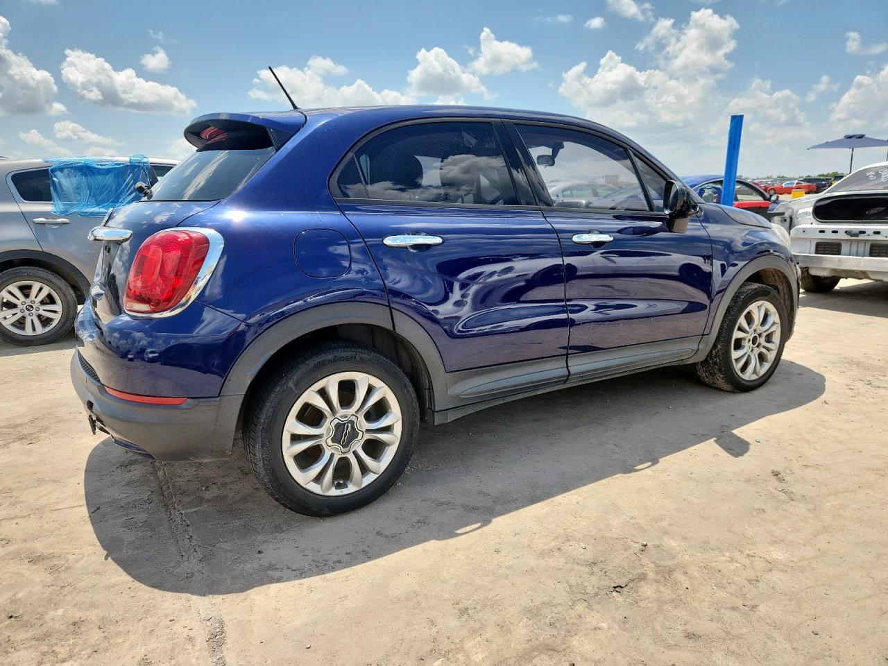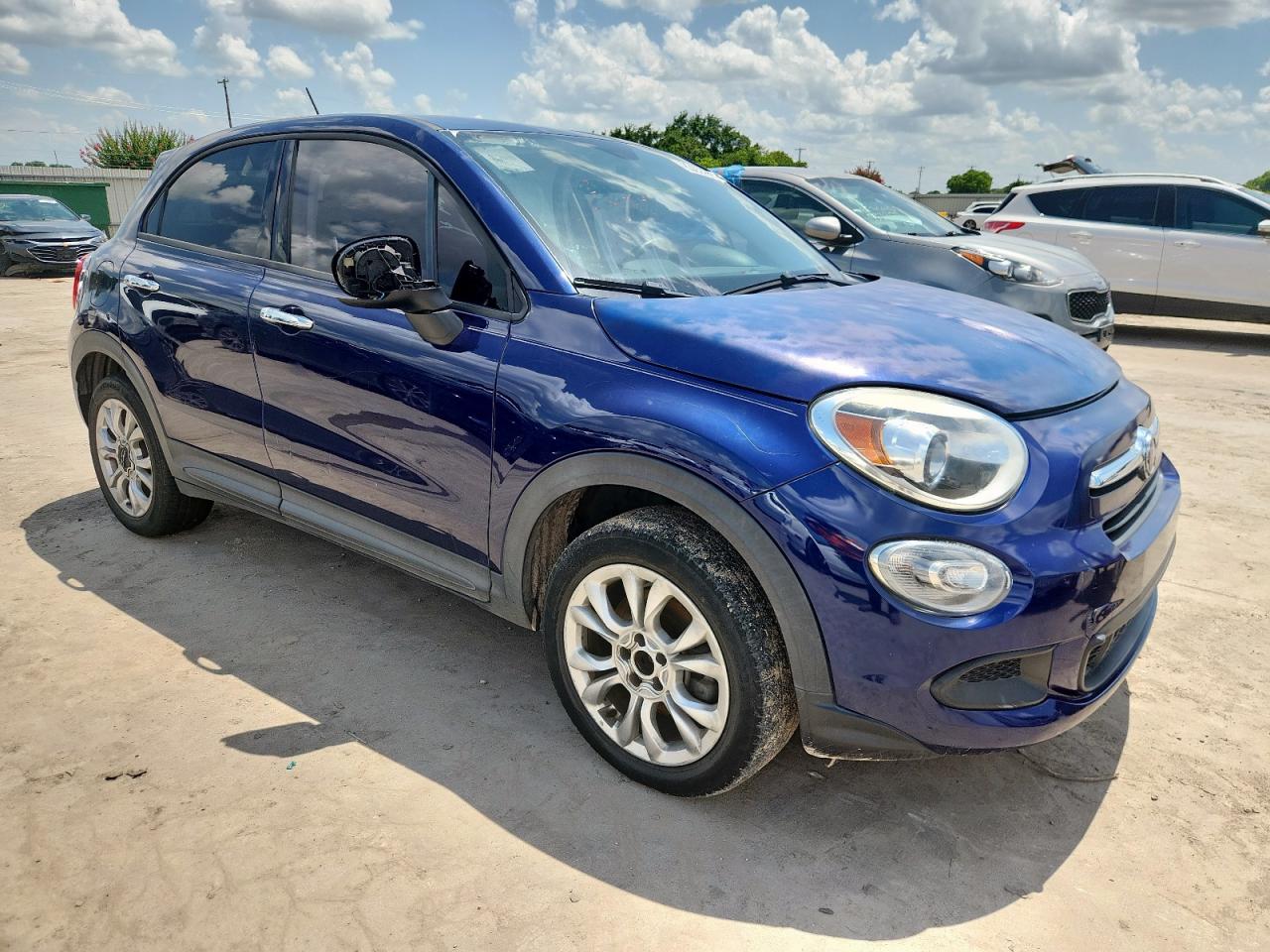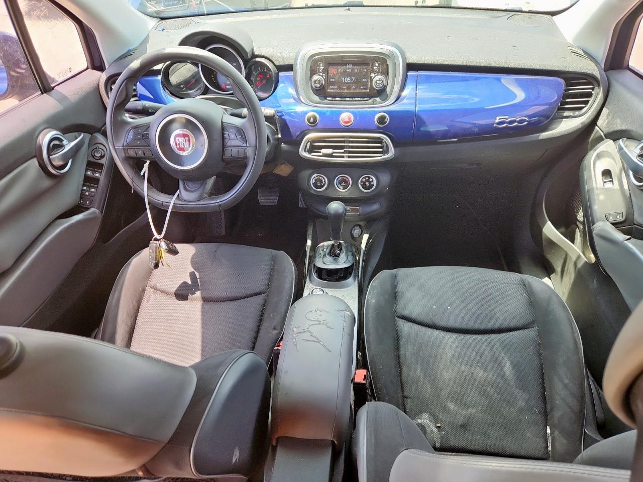 FairThe 2016 FIAT 500X EASY, a compact crossover, presents with rear-end damage. The primary damage is concentrated at the rear, with no other significant secondary damage identified. The body panels have damage. The exterior features a blue finish, while the interior shows signs of wear and tear consistent with its age and mileage. The car is drivable and the wheels are fine. The airbags appear to be intact.
