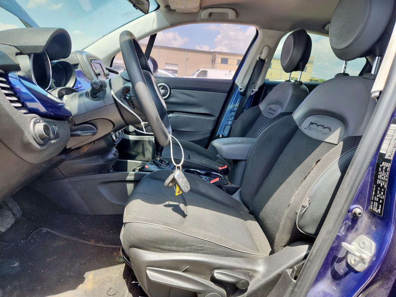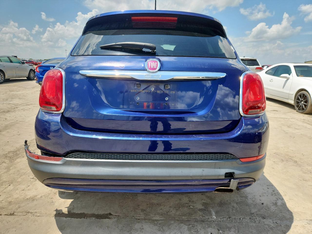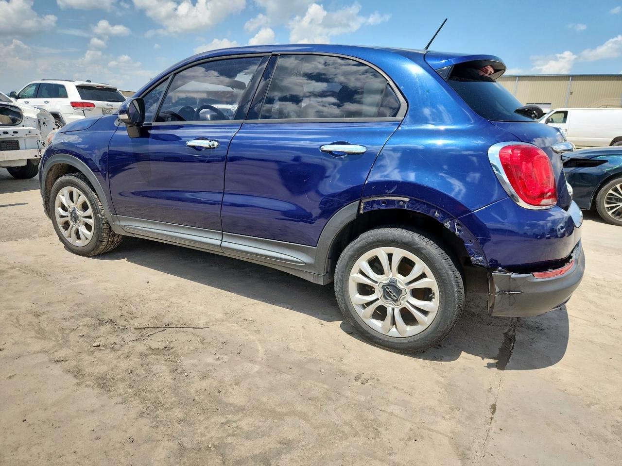 FairThe 2016 FIAT 500X EASY, a compact crossover, presents with rear-end damage. The primary damage is concentrated at the rear, with no other significant secondary damage identified. The body panels have damage. The exterior features a blue finish, while the interior shows signs of wear and tear consistent with its age and mileage. The car is drivable and the wheels are fine. The airbags appear to be intact.