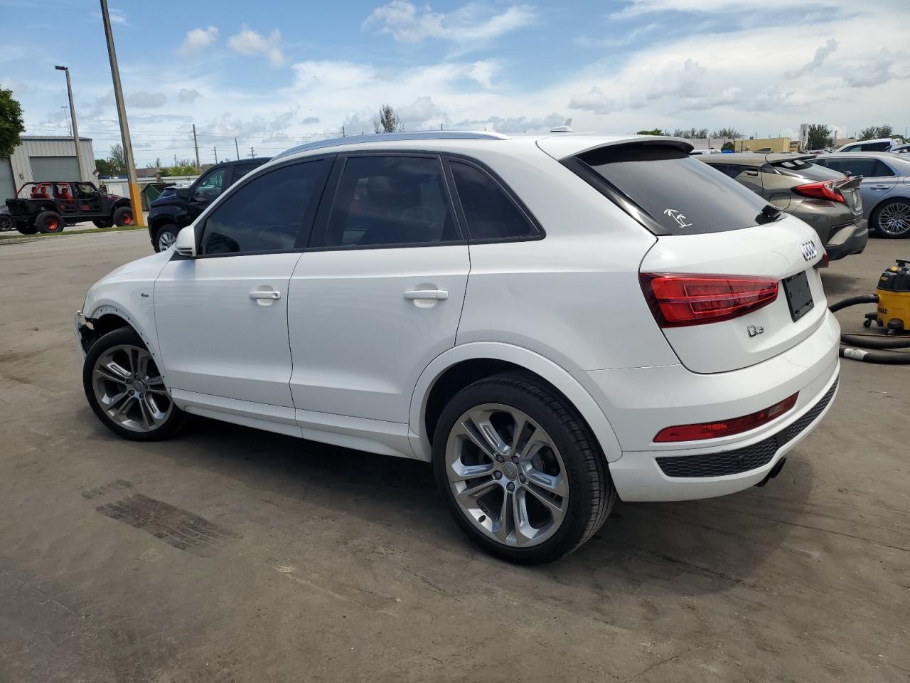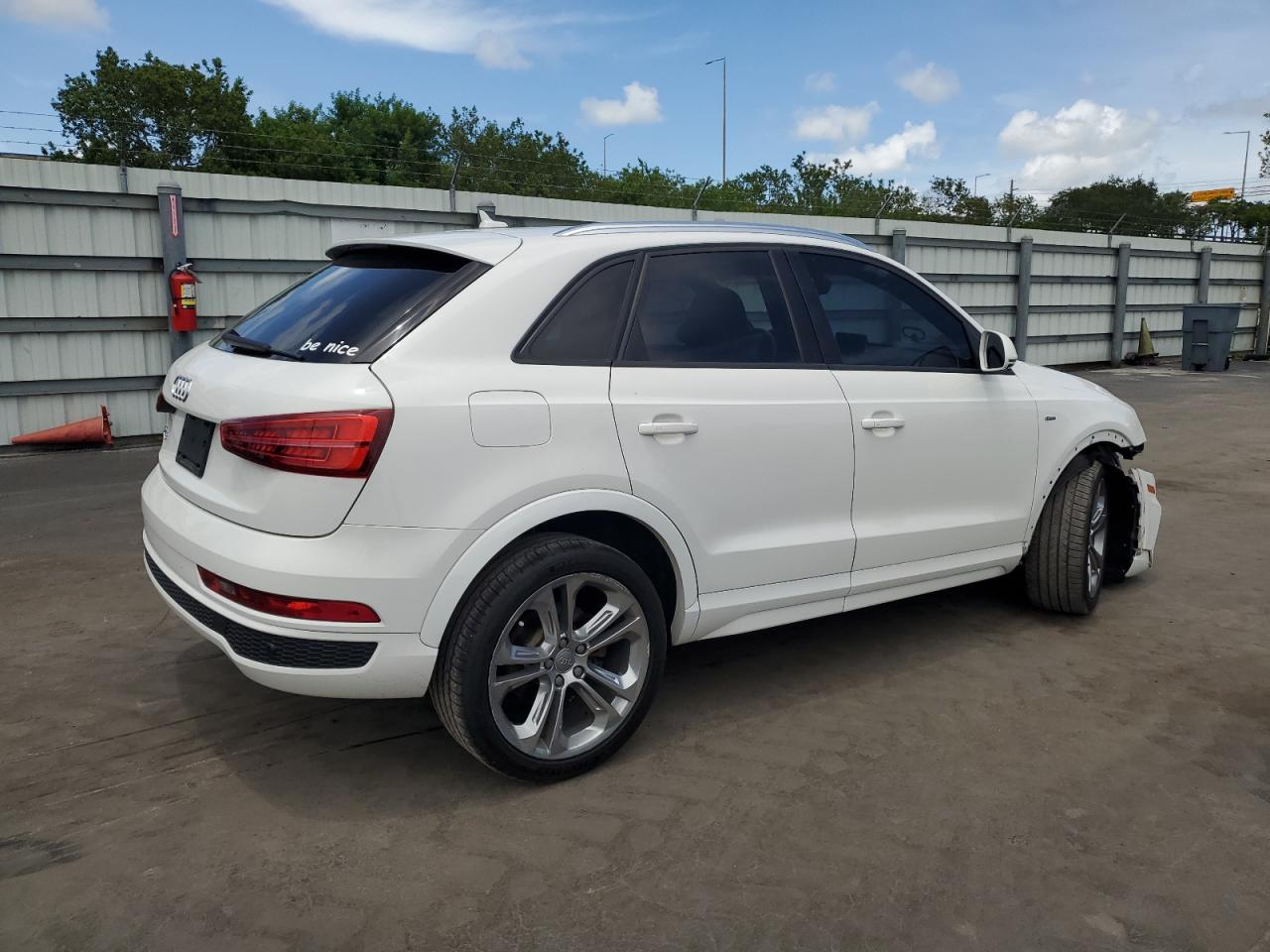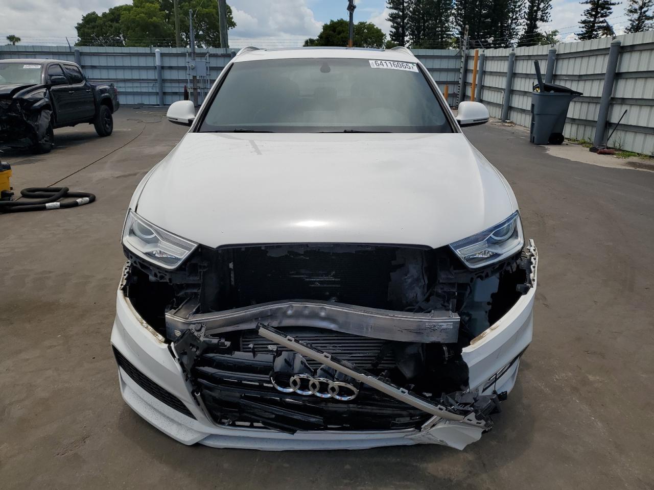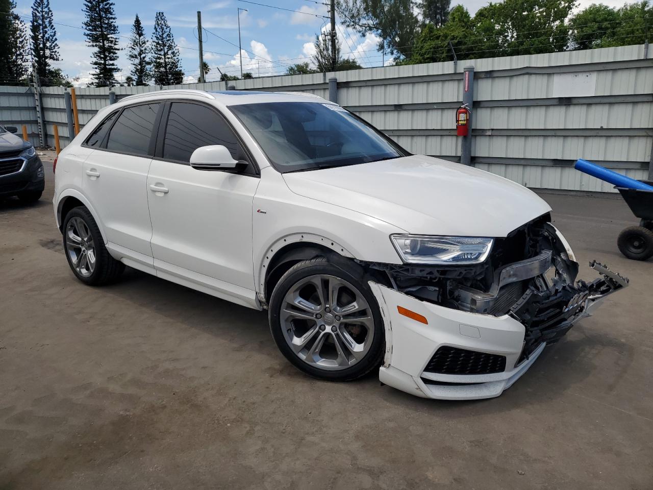 FairThe 2018 Audi Q3 Premium in white exhibits front-end damage. The primary damage is to the front end, with no secondary damage reported. The vehicle is confirmed as Run & Drive Verified. The car's body has sustained significant damage. Interior condition is very good