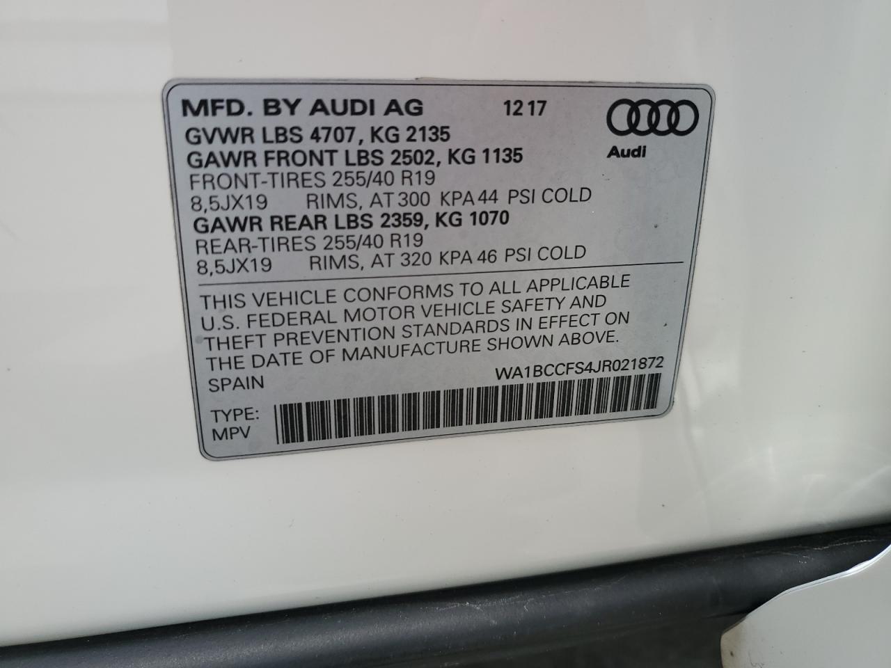 WA1BCCFS4JR021872Фінальна Ставка