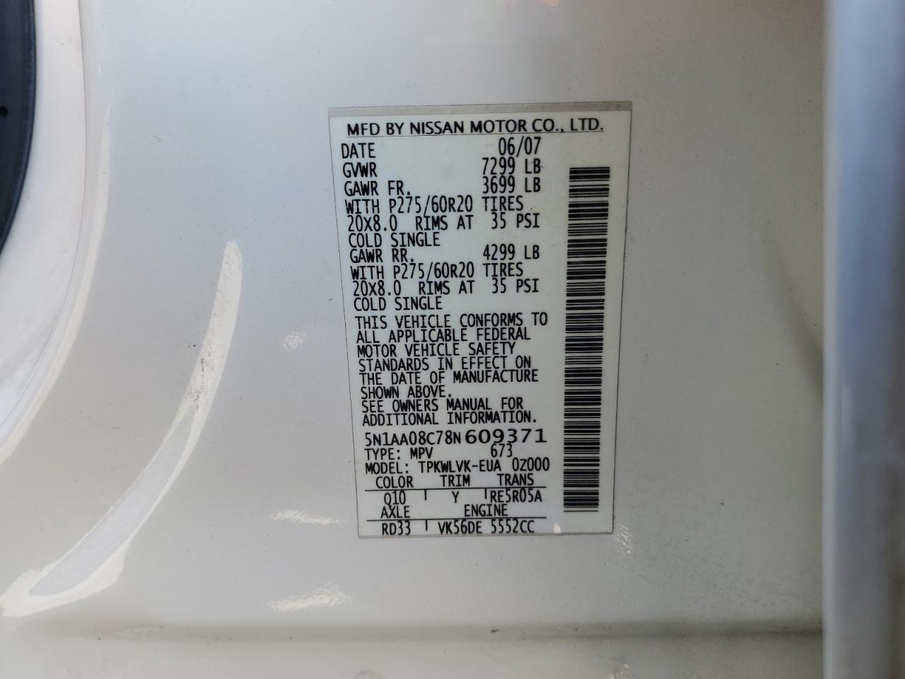 5N1AA08C78N609371Фінальна Ставка