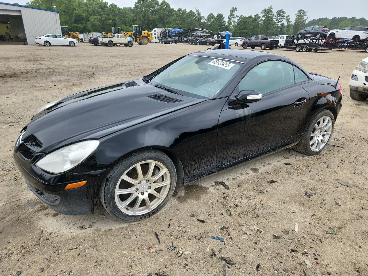 GoodThe 2007 MERCEDES-BENZ SLK 350, a black convertible, shows FRONT END damage, though it's noted as Run & Drive Verified. The vehicle's exterior condition is rated as 'Good', with the interior assessed as 'Fair'. Overall, the car's state is considered 'Fair'. The damage category is 'Body'.