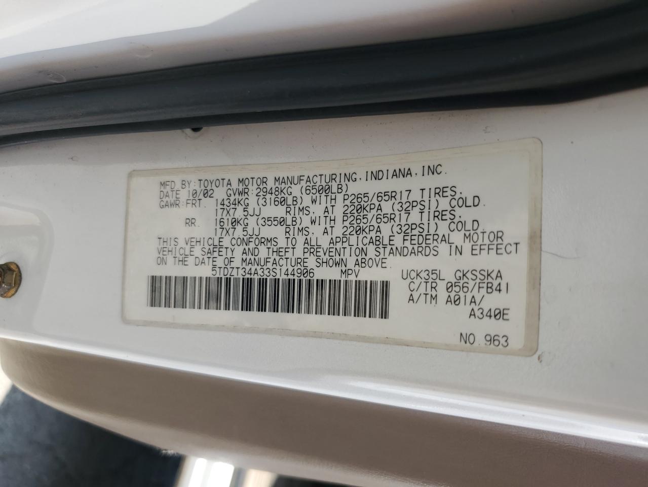 5TDZT34A33S144906Фінальна Ставка