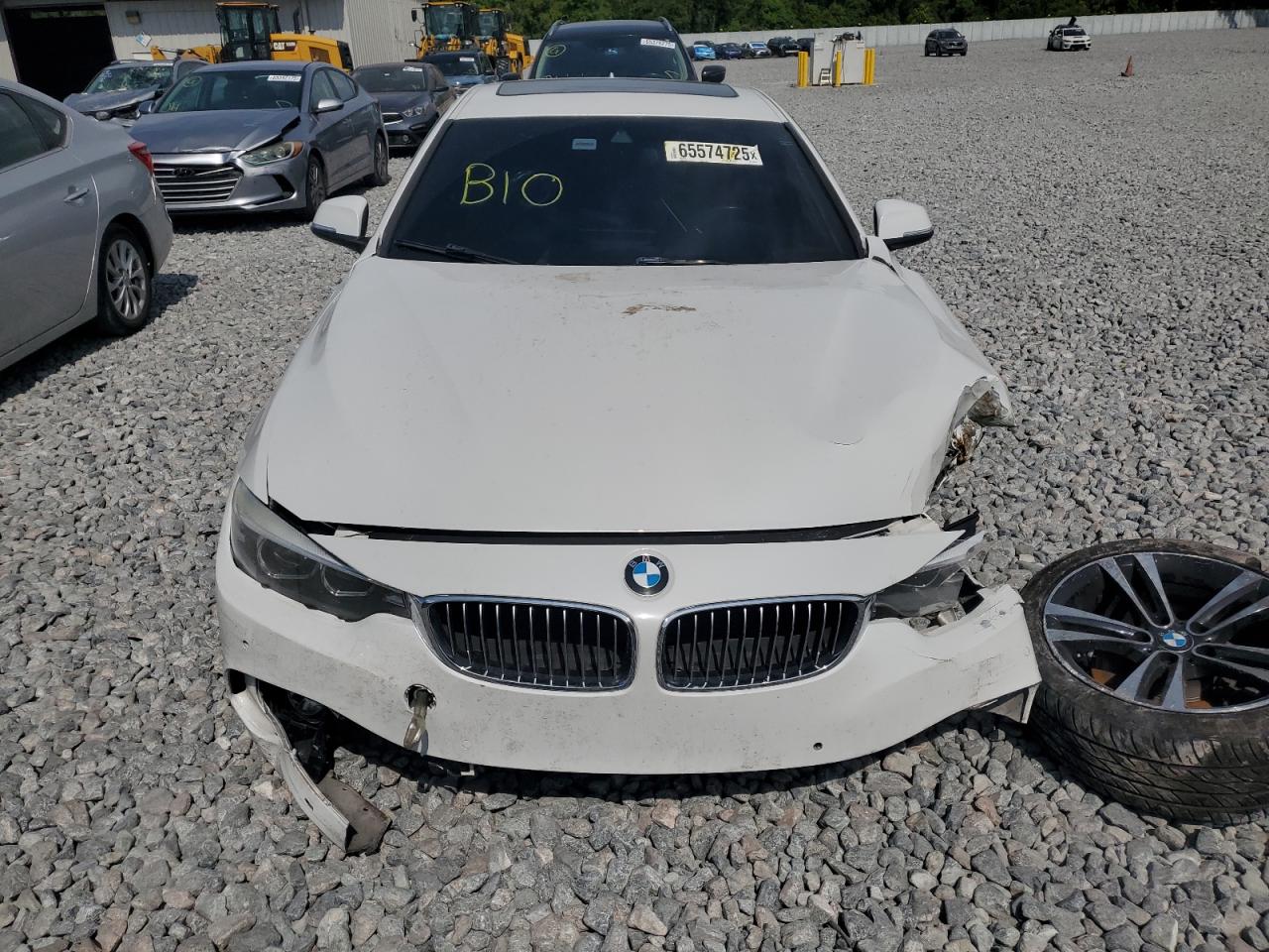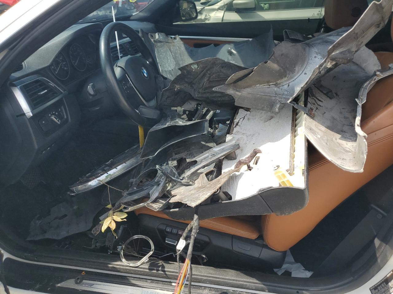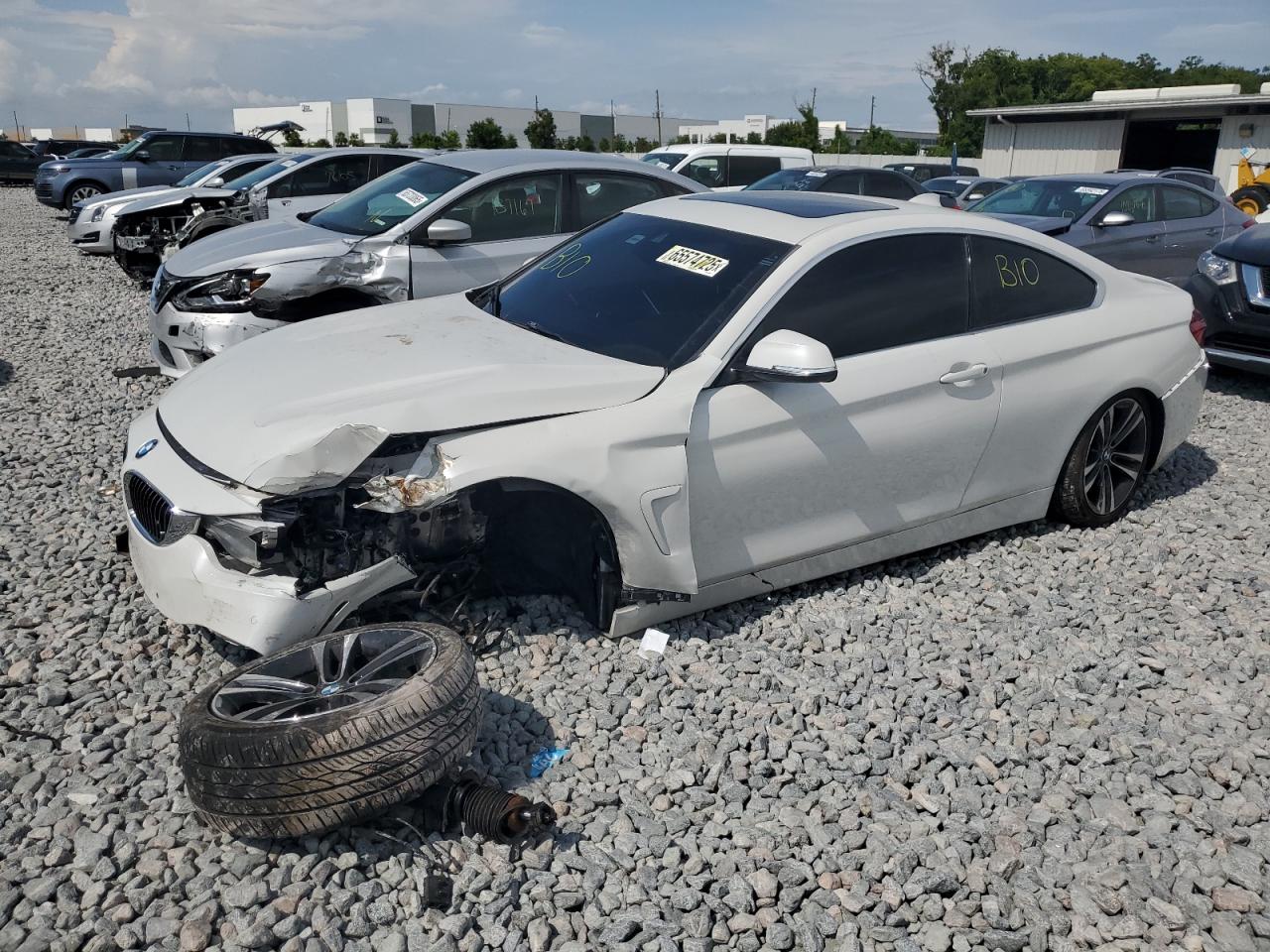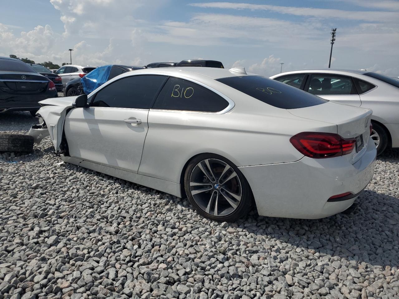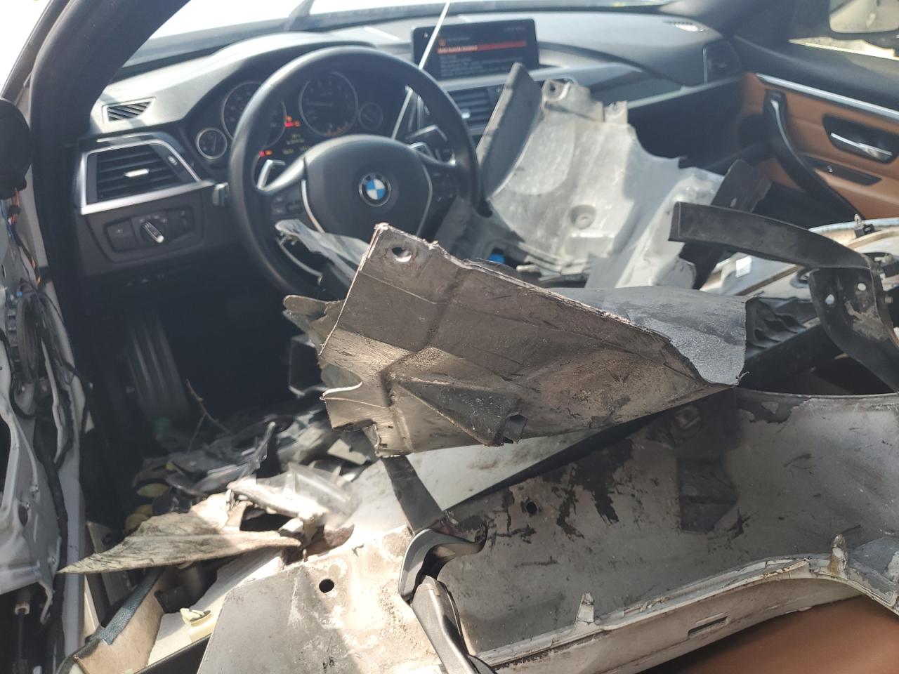 PoorThe white 2020 BMW 430i exhibits extensive damage, rendering it non-drivable. The vehicle's exterior shows significant damage, predominantly to the body panels, including the front end and the driver's side. The interior has been severely impacted with visible damage to the dashboard and the potential deployment of airbags. The vehicle's 'Run & Drive Verified' status indicates a history where the car was operational at some point before its current condition.