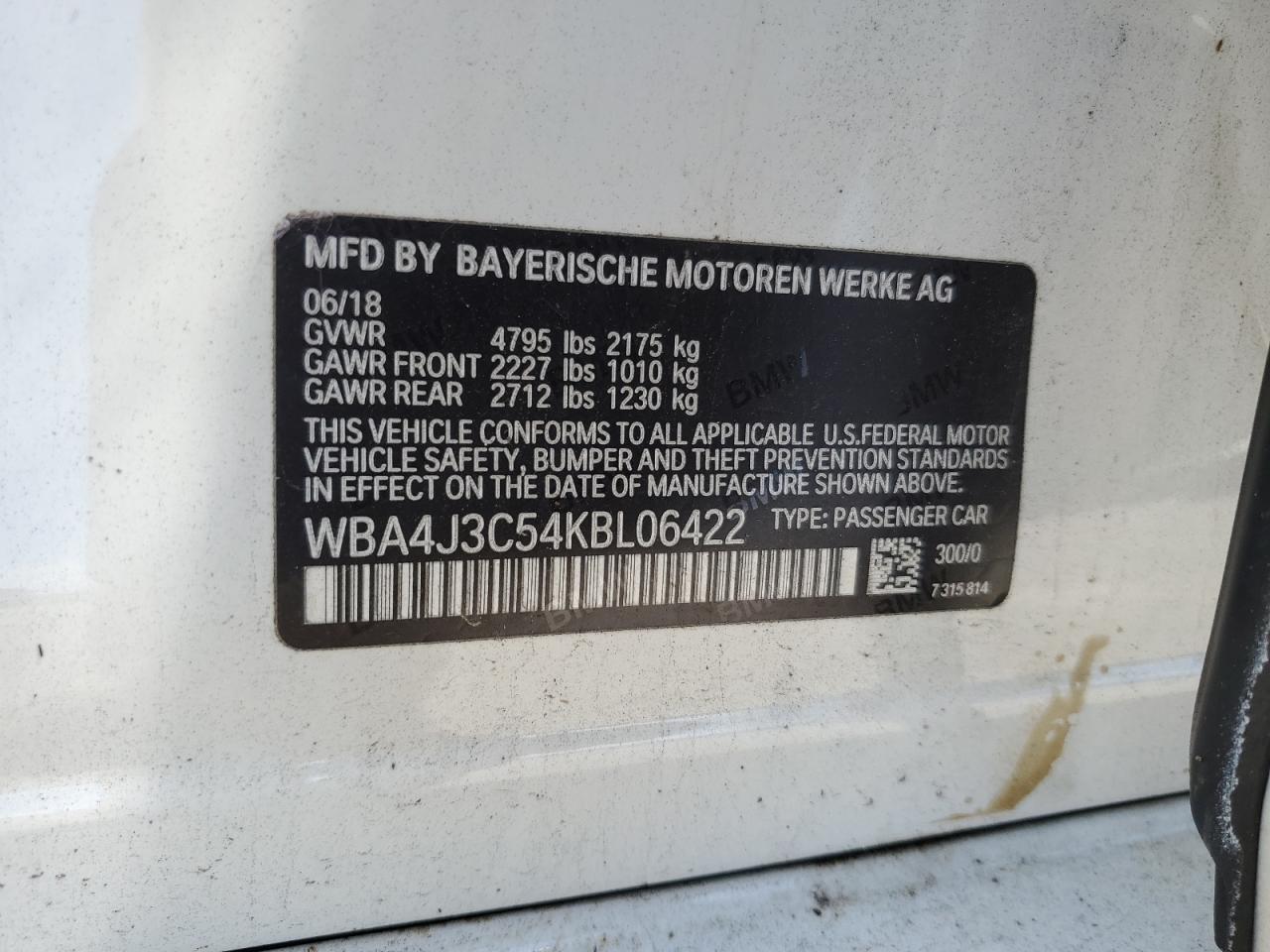 WBA4J3C54KBL06422Фінальна Ставка