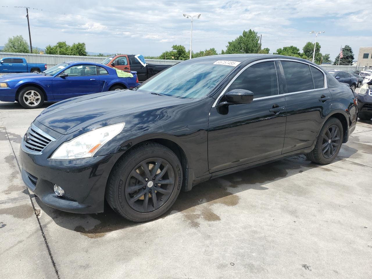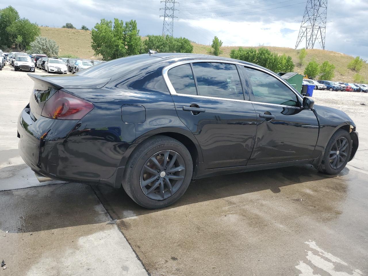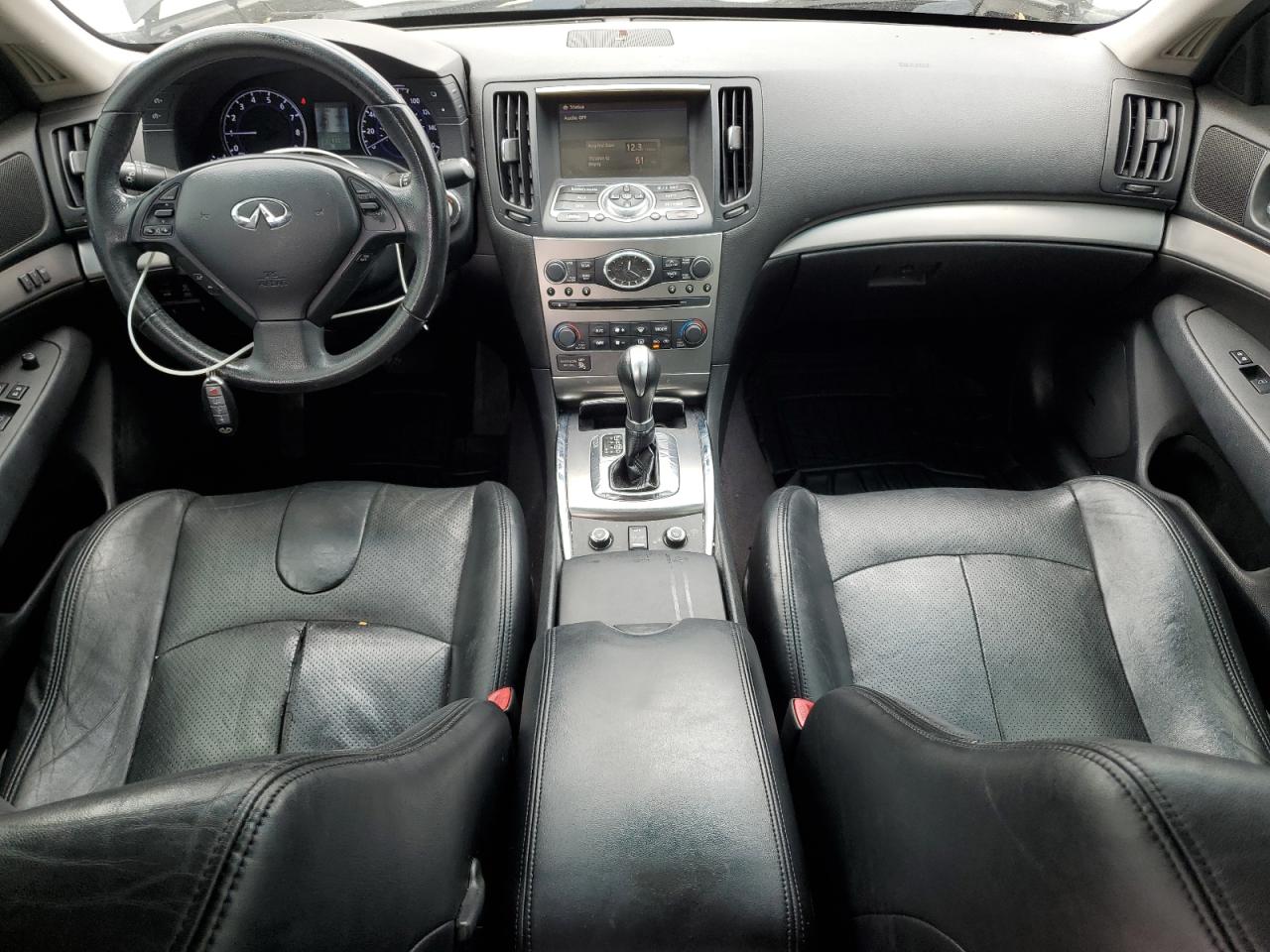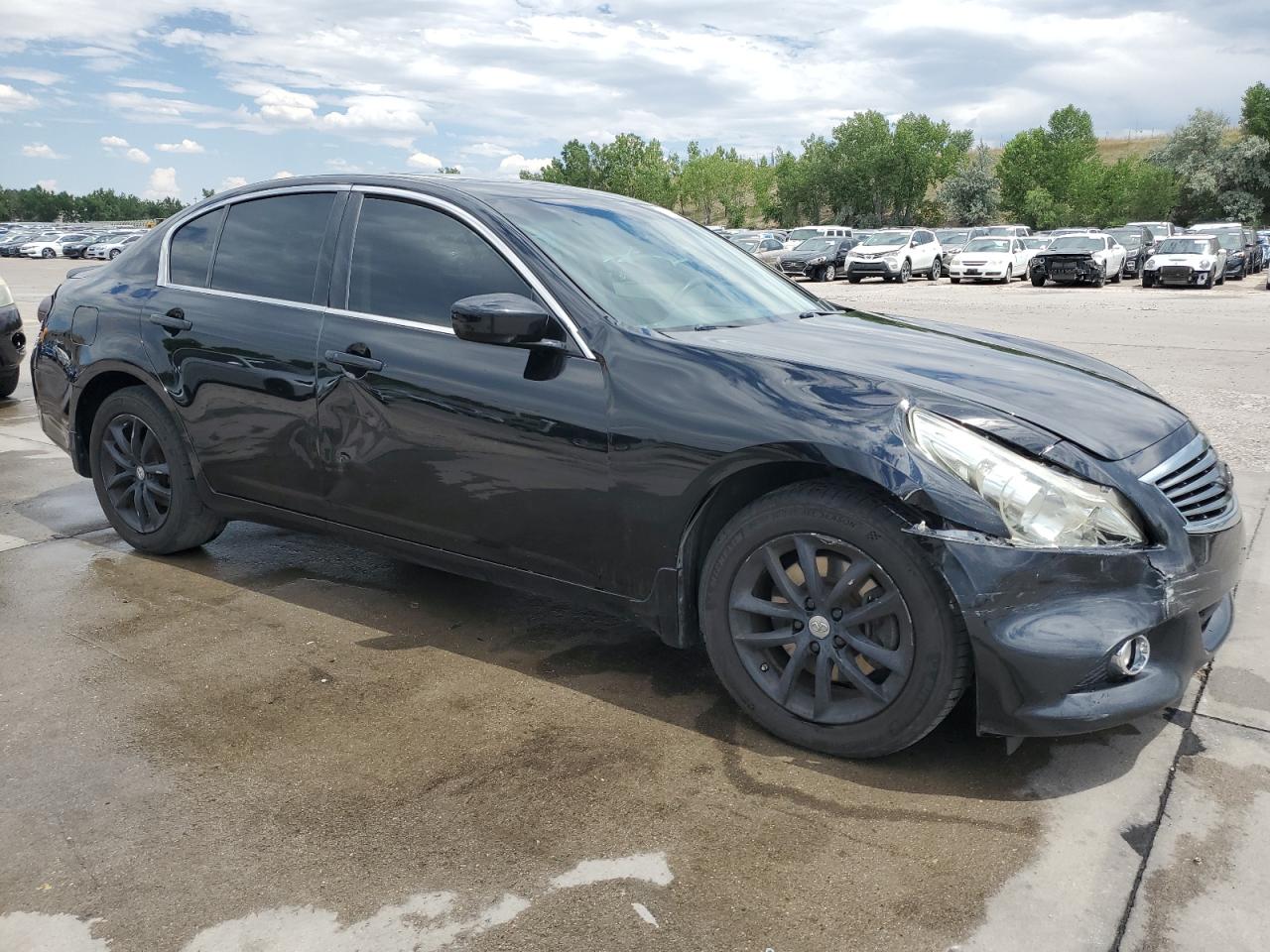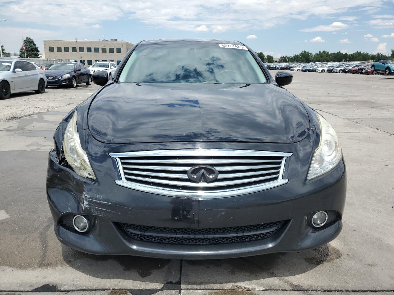 FairThe 2011 INFINITI G37 is a charcoal-colored sedan exhibiting side and front-end damage, with a Run & Drive Verified status. The vehicle's exterior shows moderate damage, with the body panels affected, but the interior appears to be in good condition. The wheels and glasses appear intact. The car is drivable.