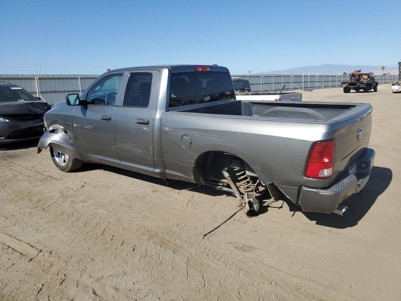 FairThe 2012 Dodge Ram 1500 is a gray truck with significant damage. The primary damage is to the undercarriage, with secondary damage to the front end. The vehicle starts, but the extent of the damage suggests it may require considerable repair. The wheels, lights, and glasses appear to have some damage.