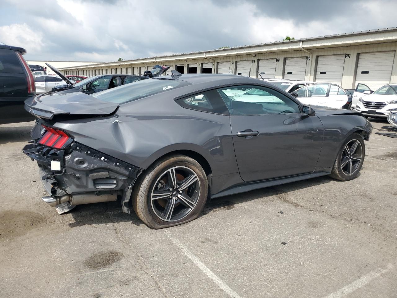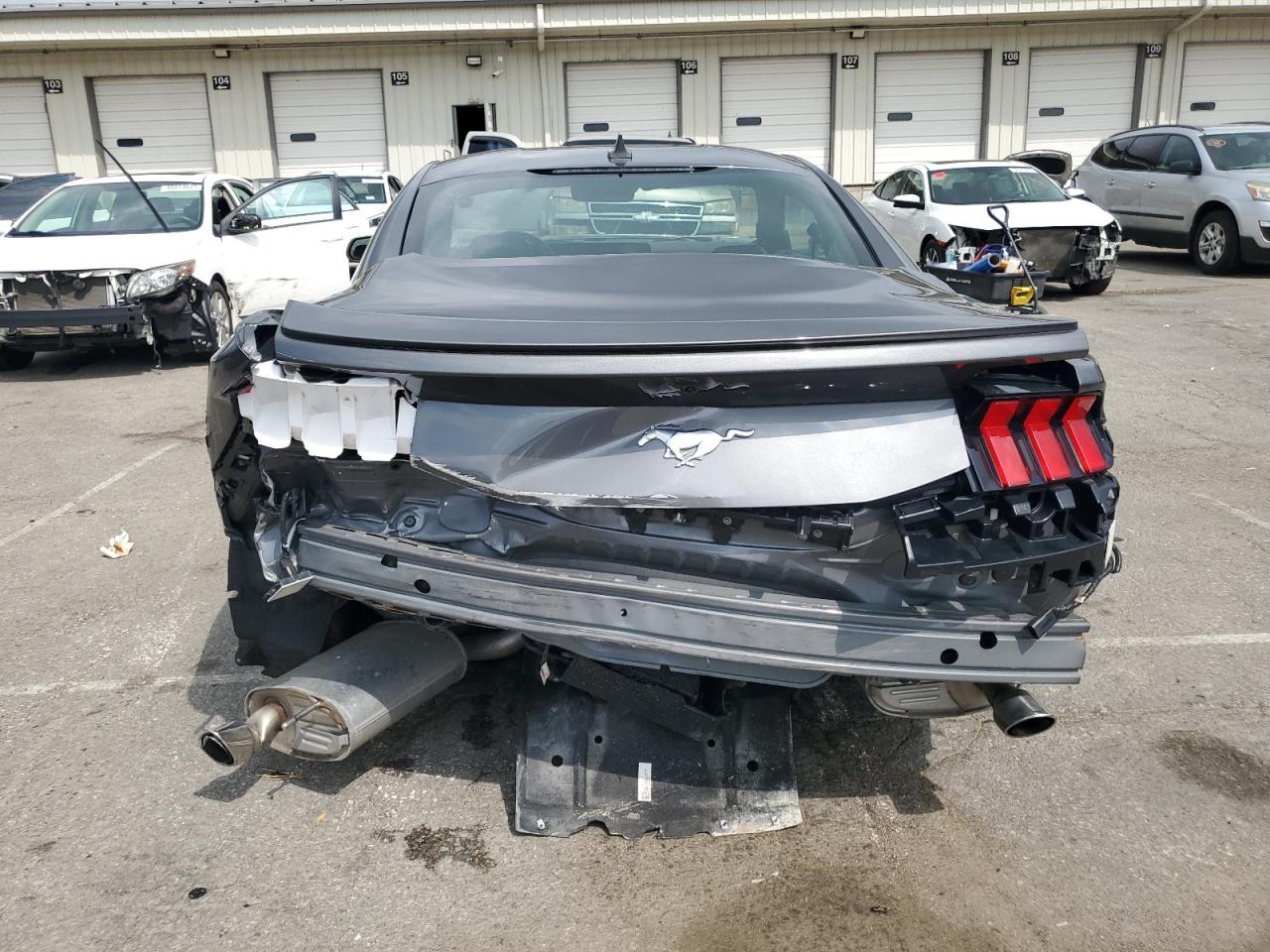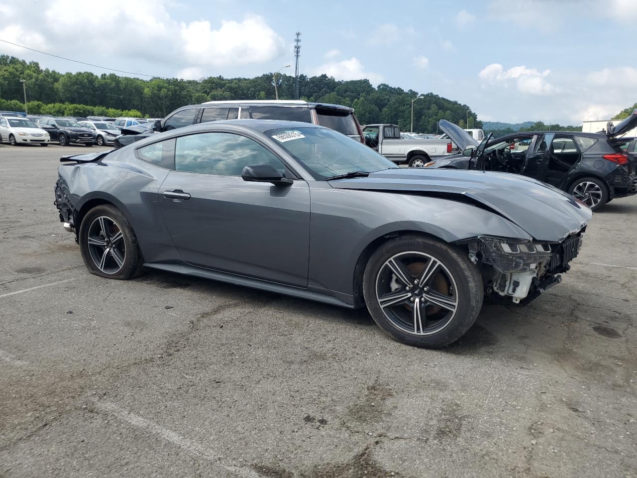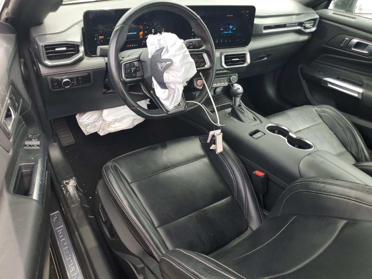 FairThe gray 2024 Ford Mustang has sustained significant damage. The front end shows severe impact damage, with the bumper and front components compromised. The rear end is also heavily damaged. The interior shows signs of airbag deployment. The vehicle is likely drivable but requires substantial repairs. The vehicle’s lights and glasses seem to be intact.