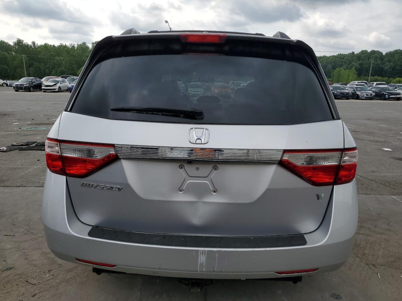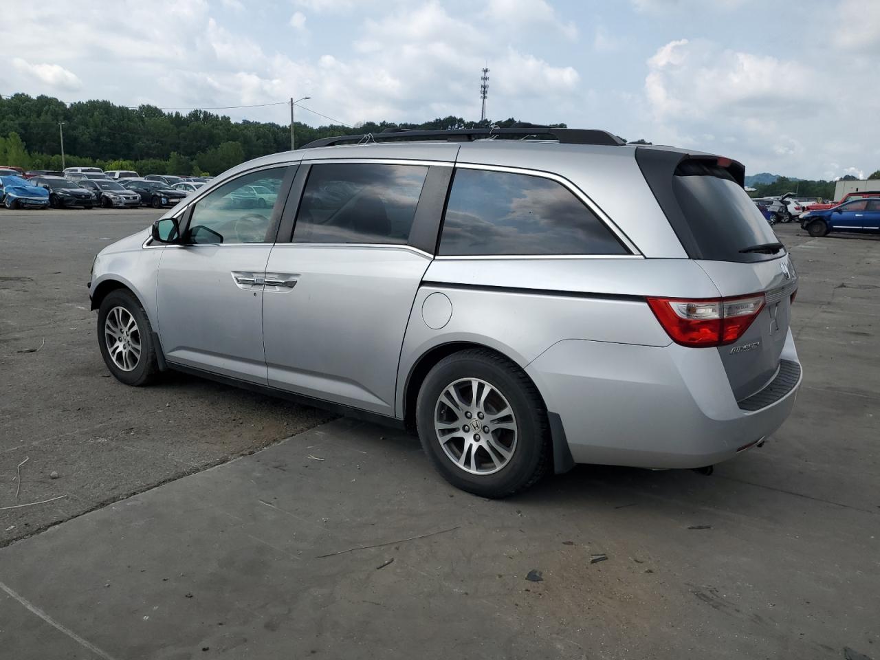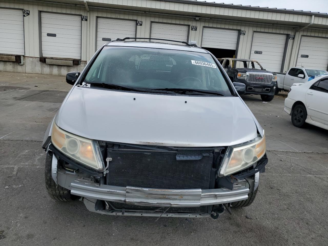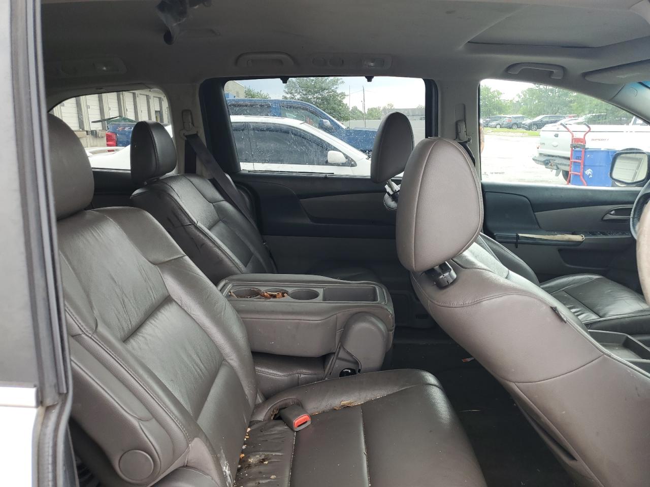 The Honda Odyssey shows significant front-end damage including a damaged bumper, and missing front components. The body panels show visible damage, indicating a need for repairs. Interior appears to be in good condition with minimal damage. The wheels are fine and the lights are in good condition.