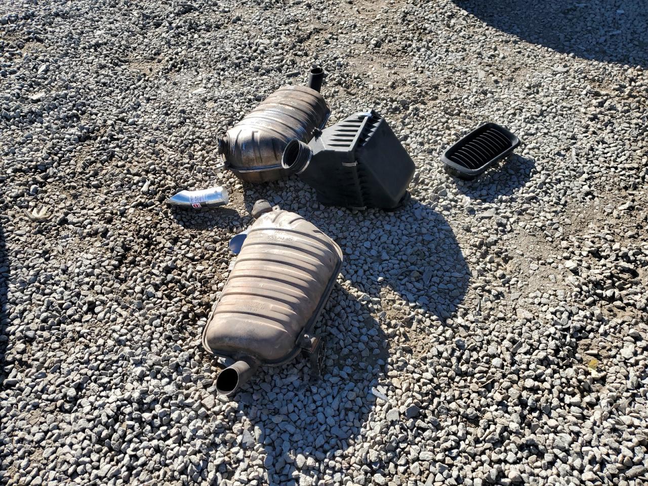 The vehicle has front-end damage, and the body panels show signs of wear and tear, and the interior has damages.