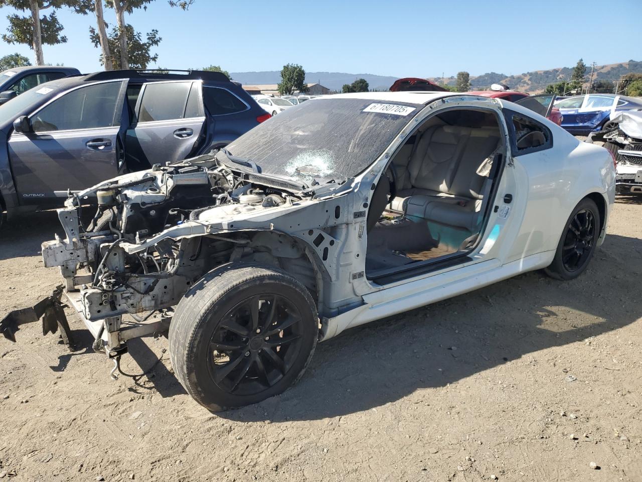 PoorThe INFINITI G37 2008 is heavily stripped of its parts, with significant damage to the body. The white car has been gutted, showing extensive interior damage. The wheels are present but the front end and doors are gone. The car is undrivable and requires considerable repair. The airbags are likely deployed or removed.