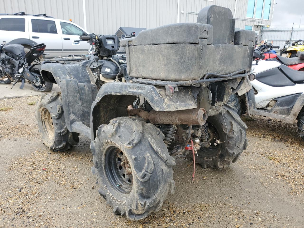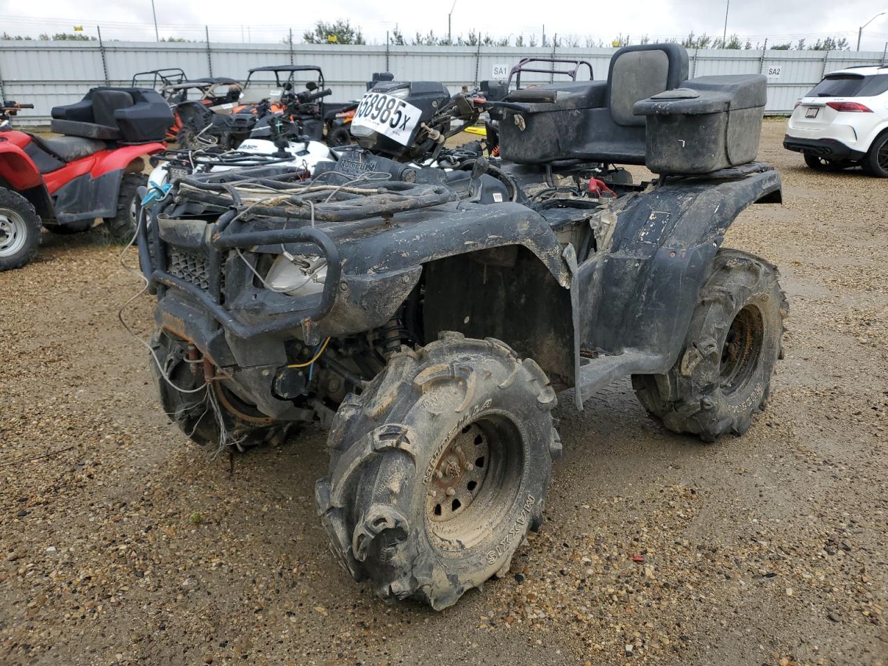 The ATV has sustained vandalism and front-end damage. The body panels exhibit significant damage. The lights and glasses have visible damage as well. The interior condition also appears poor. The wheels appear to be in damaged state.