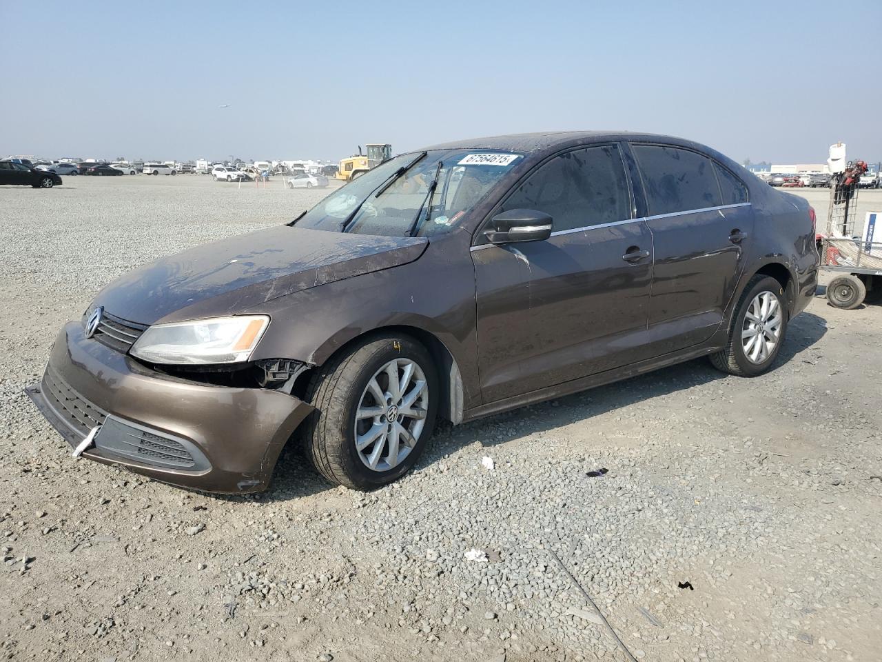 FairThis is a brown 2013 VOLKSWAGEN JETTA SE. The primary damage is to the side, with secondary damage to the front end. The vehicle starts. The car has significant damage overall. The side of the car exhibits extensive damage, including crushed body panels and likely structural issues. The front end also shows considerable damage. The wheels appear intact, but the glass may be damaged. The interior has visible damage, including deployed airbags. The car is not drivable.