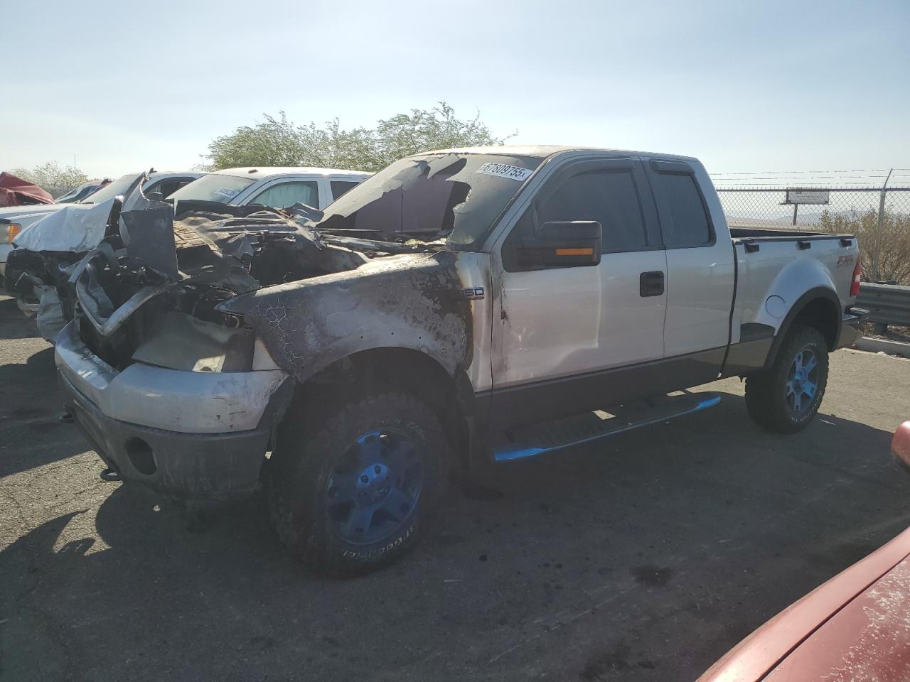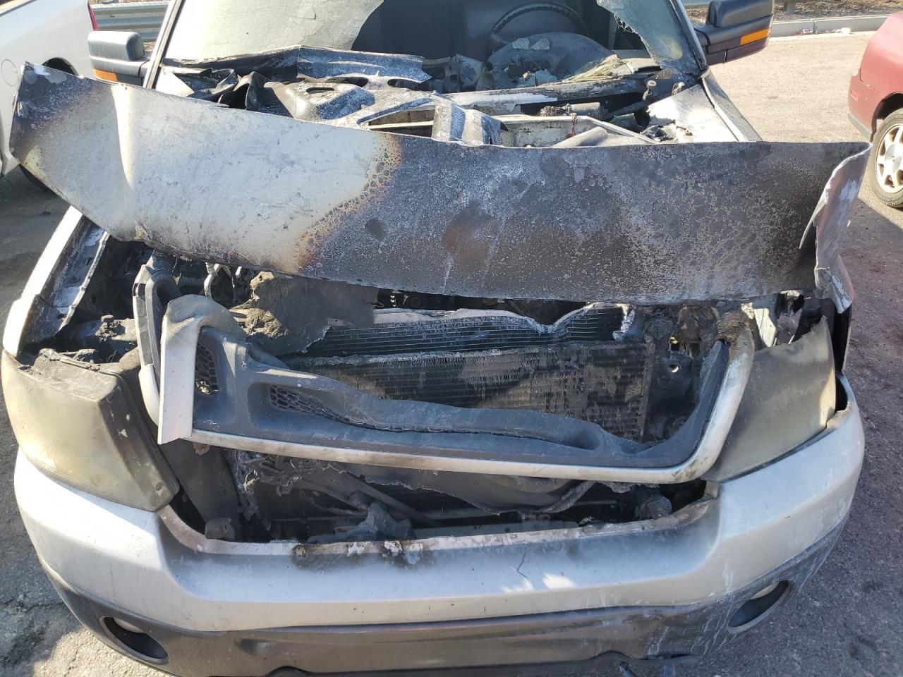 PoorThe 2006 Ford F-150 is severely damaged, with a significant portion of the front end, including the engine compartment, consumed by fire. The silver body panels show extensive burn damage, and the interior is also heavily affected, with visible damage to the seats, dashboard, and other components. The vehicle's overall condition is very poor, and it likely requires extensive repairs or is suitable for parts only. Wheels and lights appear to be in a damaged state as well.