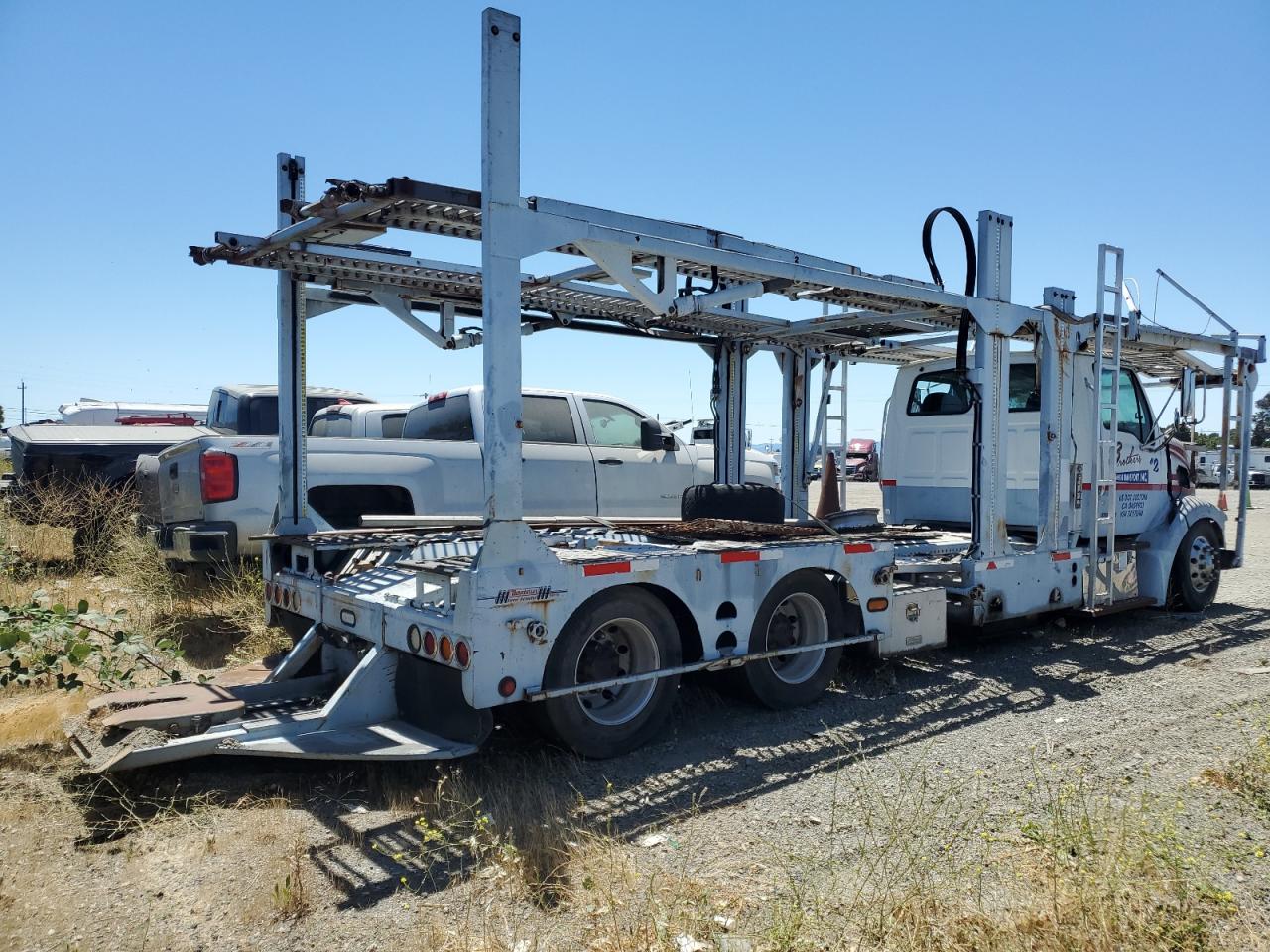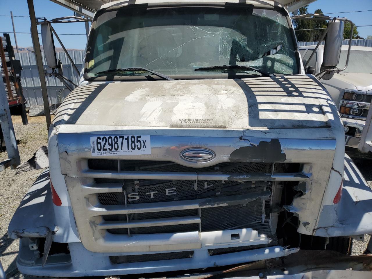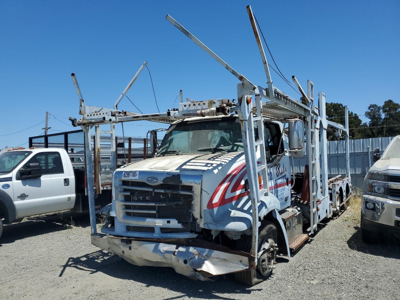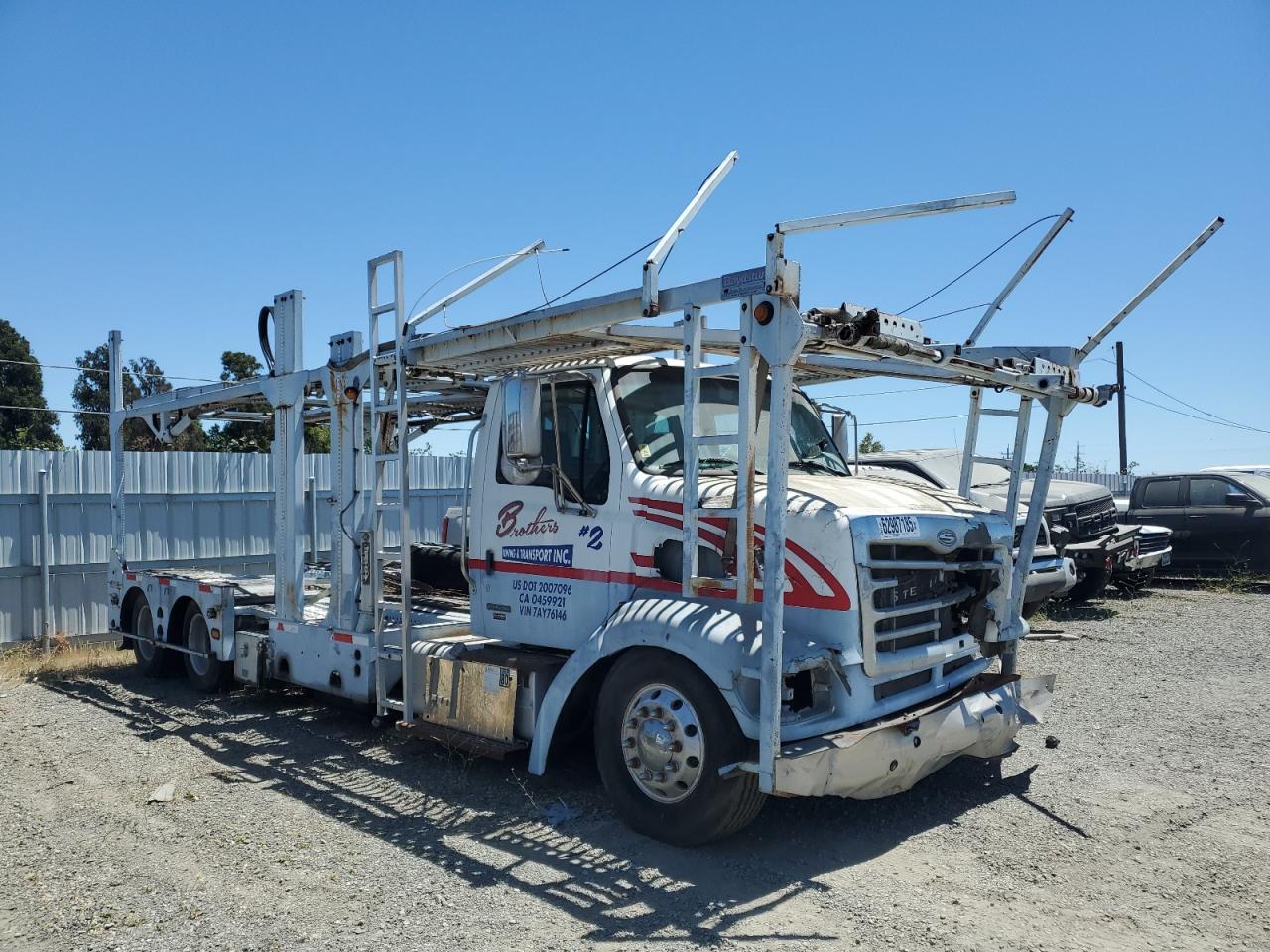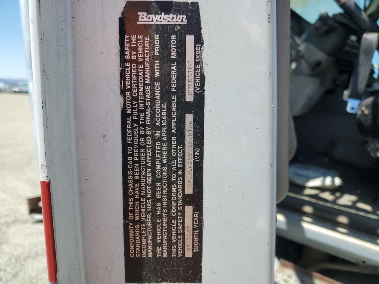 FairThe 2007 STERLING TRUCK, a white car hauler, exhibits significant front-end damage, categorized as Body damage. The exterior condition is rated as Fair, while the interior condition is considered Poor. The car's overall state reflects its considerable damage.