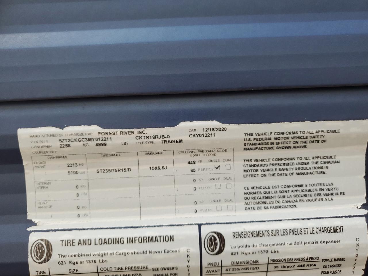 The camper has sustained hail damage and some body damage. The wheels, lights, and glass appear to be in good condition. Interior assessment reveals no significant damage, and airbags are not mentioned in the damage reports, but no damage is visible.