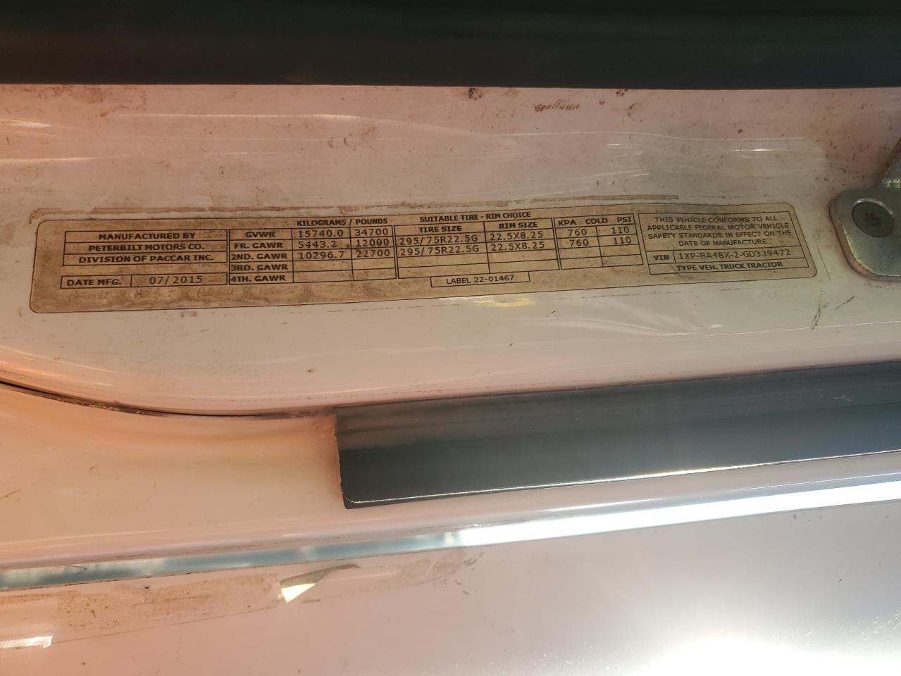 FairThe 2016 Peterbilt 579 tractor is white and exhibits significant mechanical damage, rendering it non-drivable. The engine compartment shows considerable issues. The interior shows signs of wear and tear, with potential damage to airbags. The exterior has moderate damage. The vehicle requires considerable repair.