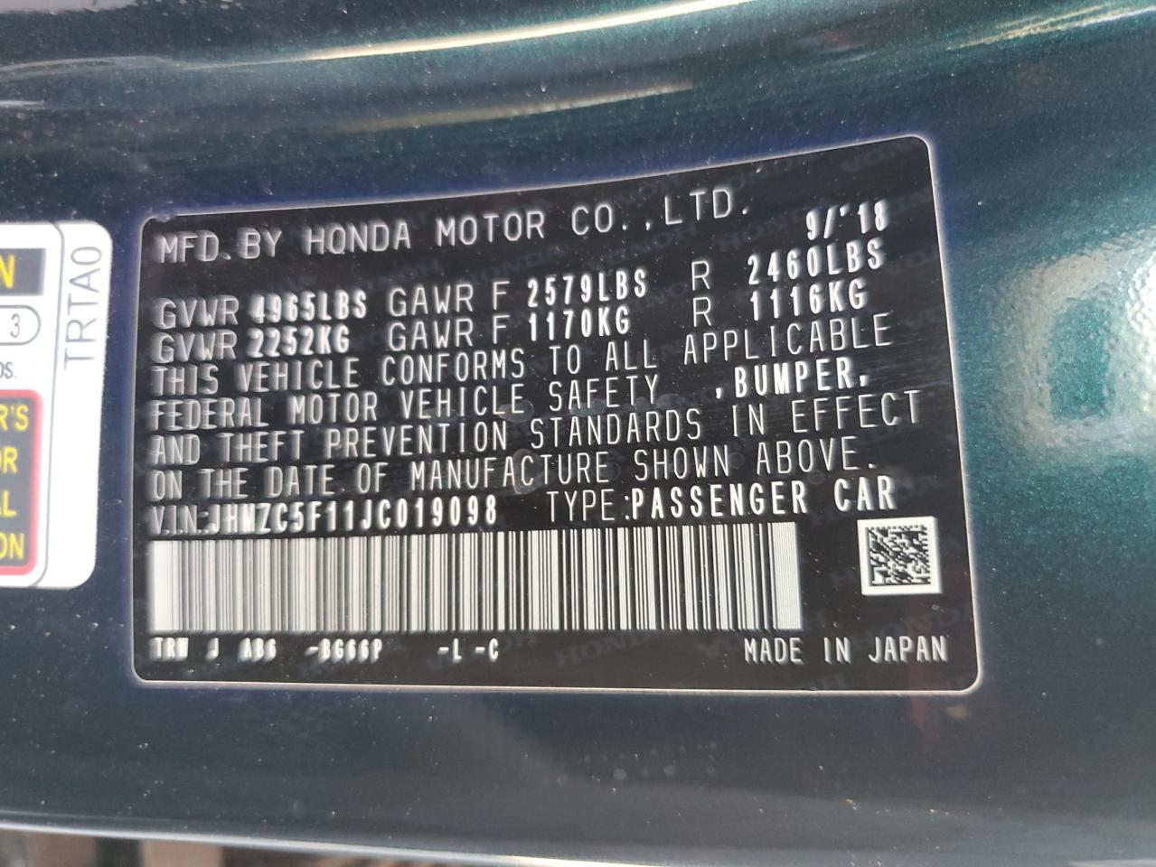JHMZC5F11JC019098Фінальна Ставка